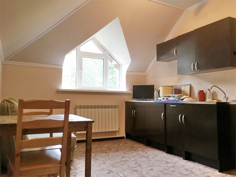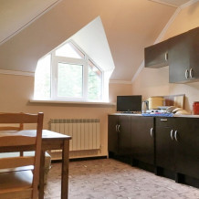 В холле на втором этаже гостиницы есть мини-кухня, Вы можете воспользоваться микроволновой печью, чайниками, и необходимой посудой. Двухкомнатный номер оборудован собственной кухней. В 50 метрах от гостиницы дружественное кафе с великолепным сочетанием цена/качество.