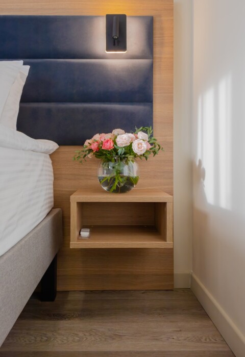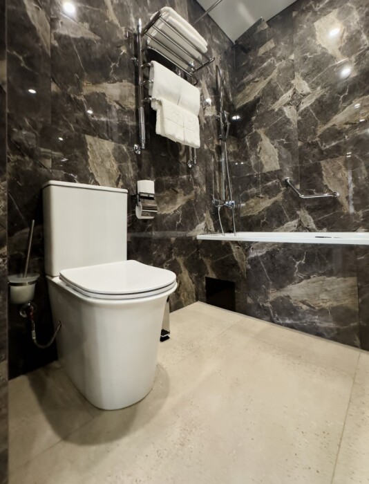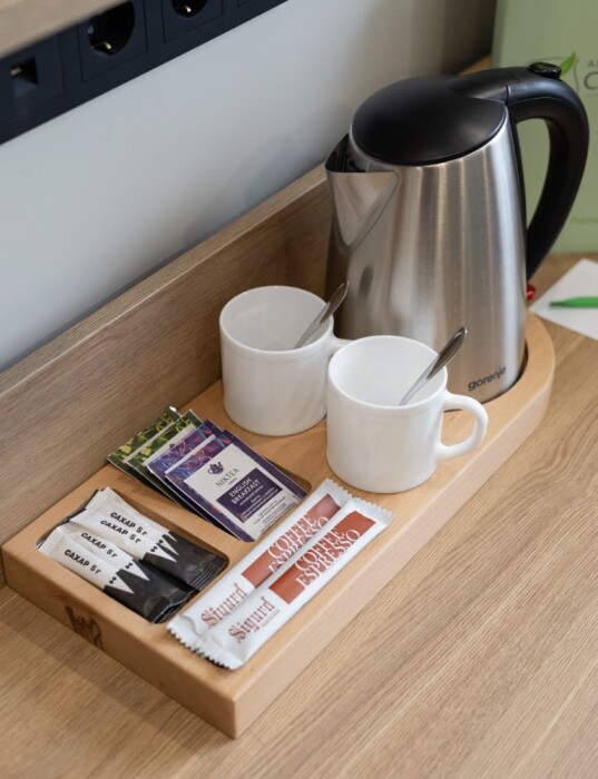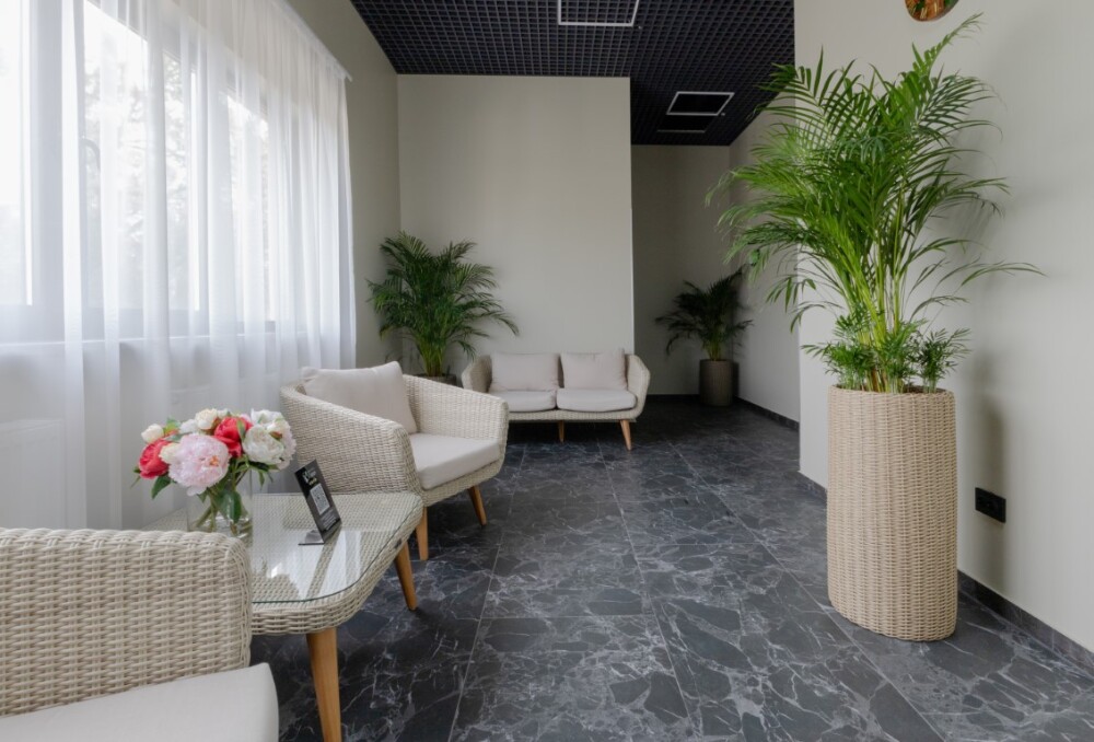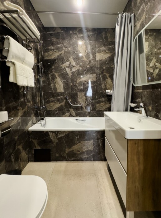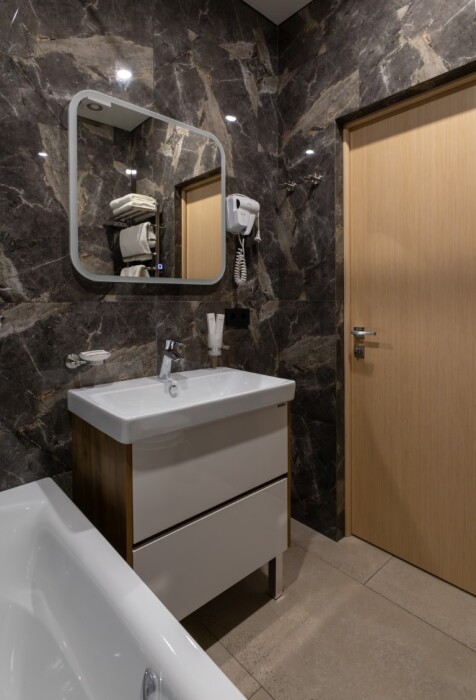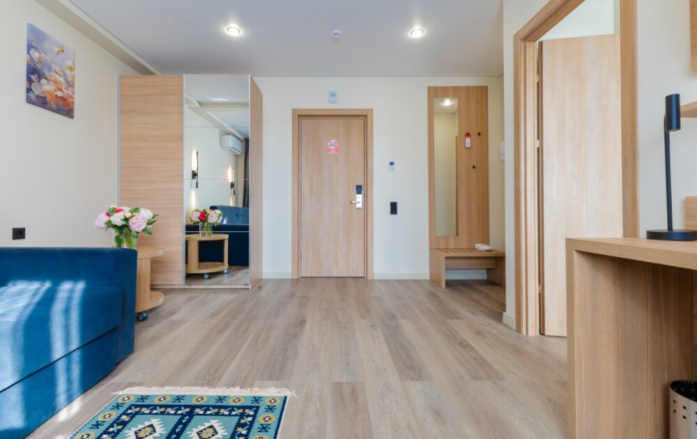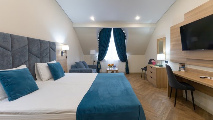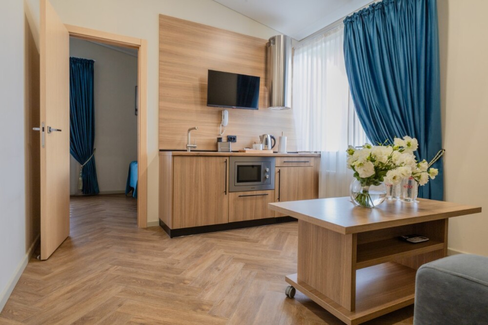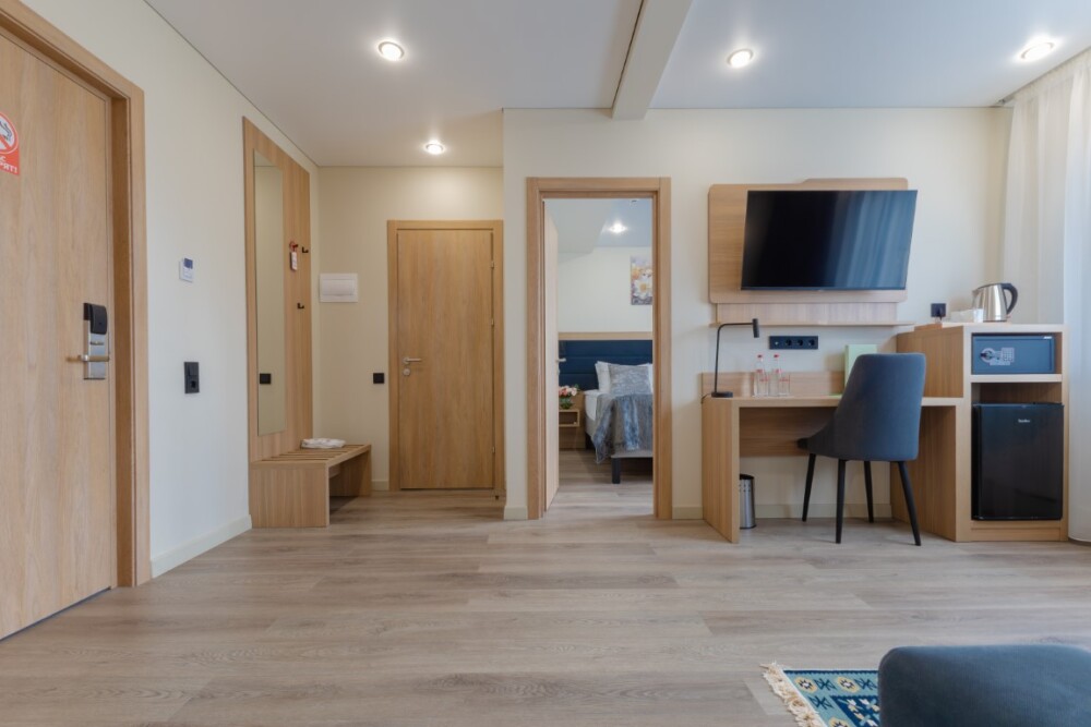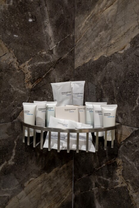 Каждый номер оборудован мебелью из экологических, износостойких материалов, которая в свою очередь обладает особой многофункциональностью, а именно возможностью трансформации спальных мест. Особая система вентиляции номерного фонда и кондиционирования, возможность регулировки отопления, наличие грузового и пассажирских лифтов «OTIS», система телефонизации обеспечивающая удобства при размещении. Собственная парковка находящаяся под видеонаблюдением. Гипоаллергенное постельное белье, полотенца и халаты высочайшего качества, выполненные из натурального хлопка.