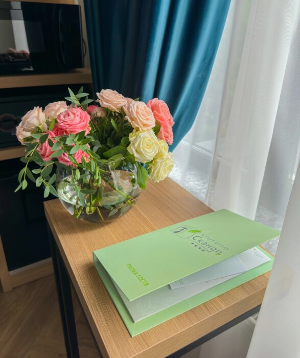 В непосредственной близости от отеля (менее 300 метров) расположен санаторий «Виктория» - партнер апарт-отеля «Сканди». На его базе гости отеля за дополнительную плату могут пройти необходимое лечение, а также посещать культурно-развлекательный центр. Направление на лечение в санаторий «Виктория» и приглашение в культурно-развлекательный центр можно получить на стойке регистрации.