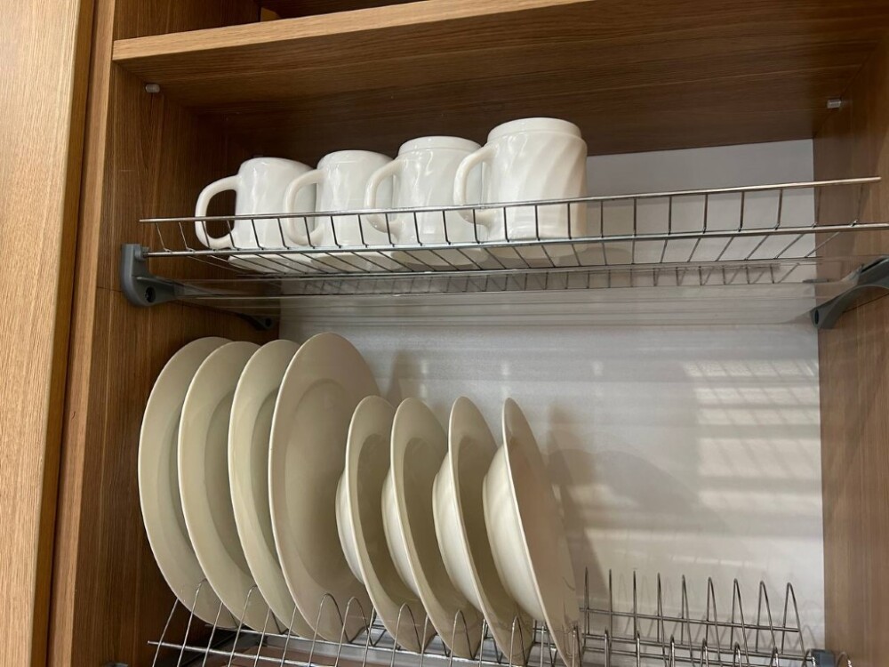 Комплект постельного белья высокого качества из натуральных материалов. Прикроватные тумбочки, зеркало, сейф, телефон, шкаф, ТВ, СВЧ печь, кухонный гарнитур с рабочей поверхностью, и всем необходимым инвентарем для приготовления пищи.