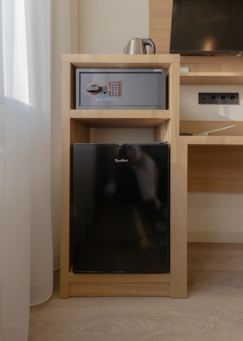 Номер повышенной комфортности, для одного, двух или трех гостей. В номере: одна двуспальная или две односпальные кровати, с ортопедическими матрасами, качественным постельным бельем, удобными подушками и одеялами. Прикроватные тумбочки, зеркало, сейф, телефон, шкаф, ТВ, холодильник, микроволновая печь, кондиционер, посуда.