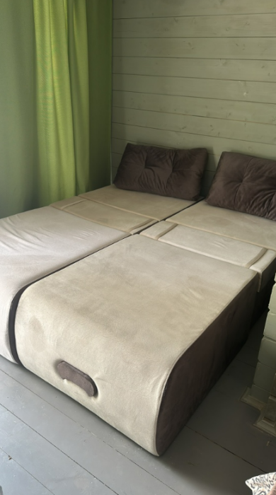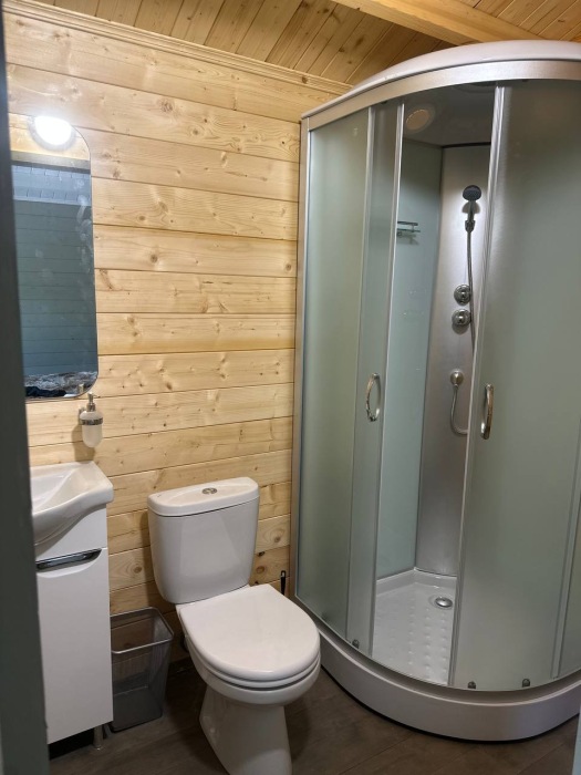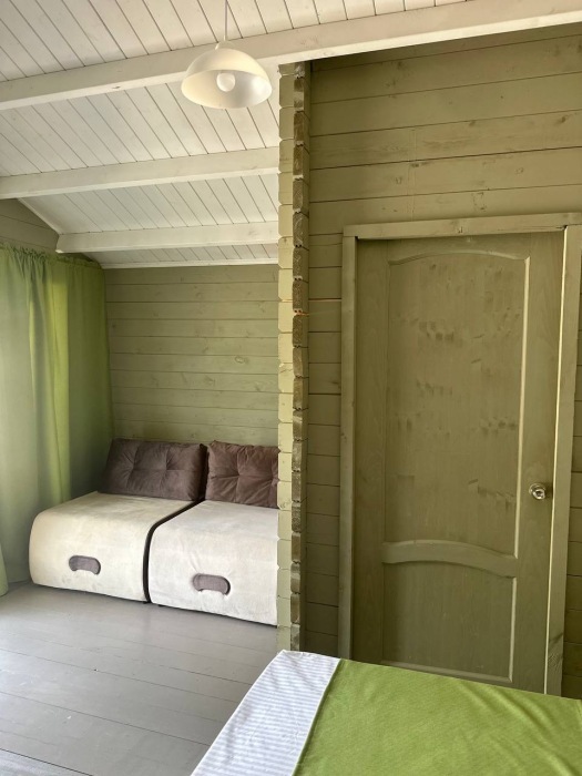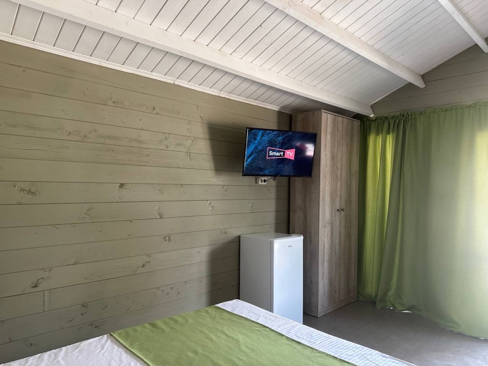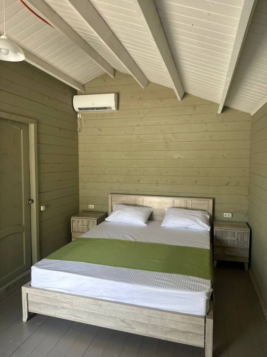 Коттедж рассчитан на 4 человека: 1 двуспальная кровать, 2 кресла-кровати. Оборудован санузлом (душевая кабина), холодильник, мощный фен (2200 Вт), туалет. В комнате телевизор, цифровое TV, кондиционер, шкаф, прикроватные тумбочки.