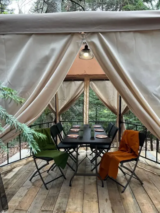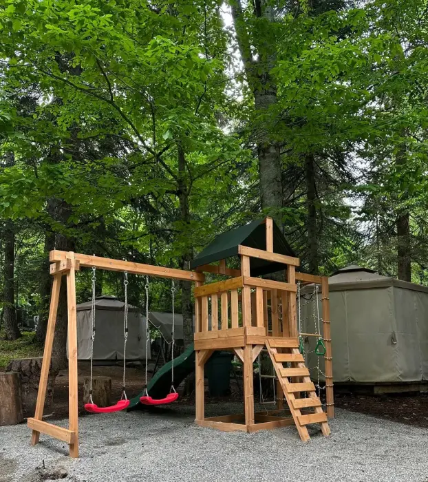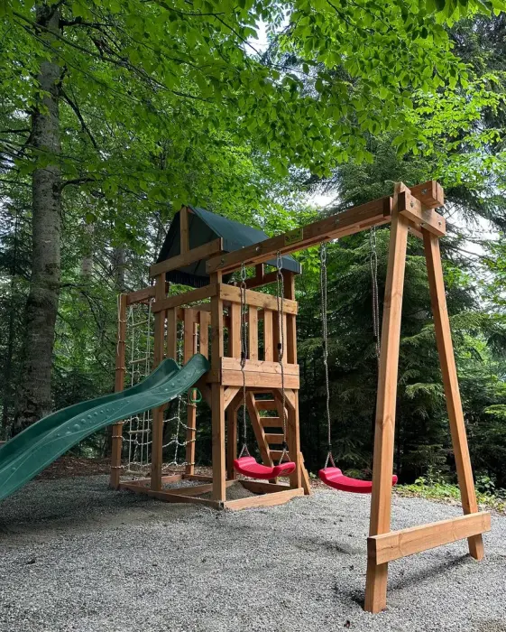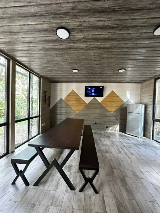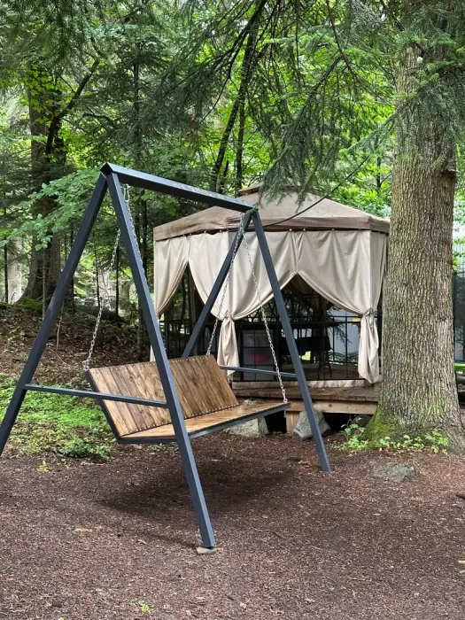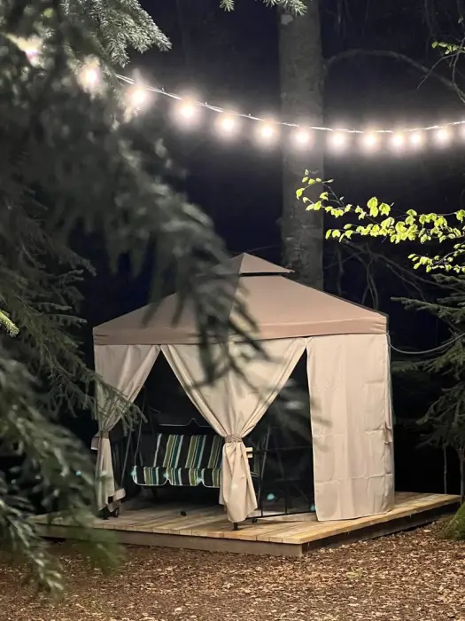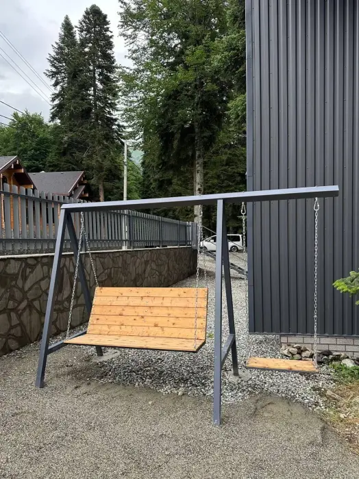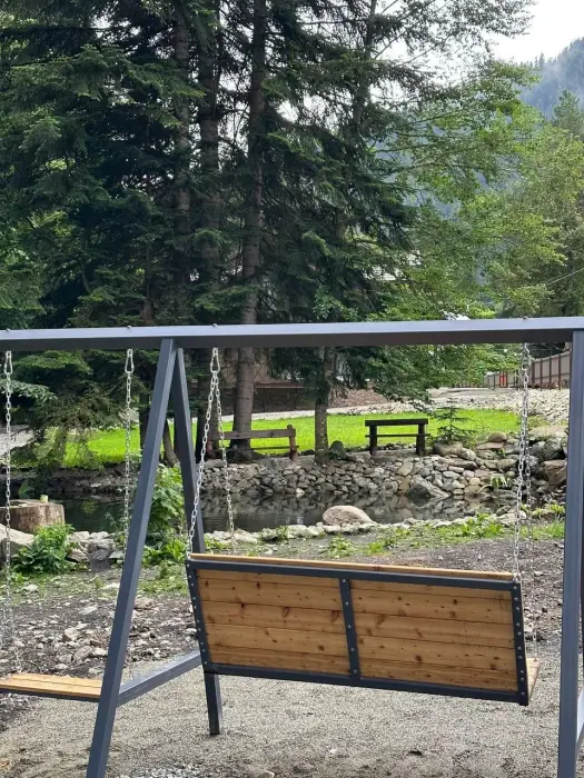 К услугам отдыхающих - бесплатный wi-fi, теплые мангальные комнаты, а также открытые террасы, оборудованные мангалами и всем необходимым для отдыха на природе, детская площадка, батут, беседки-шатры, качели.