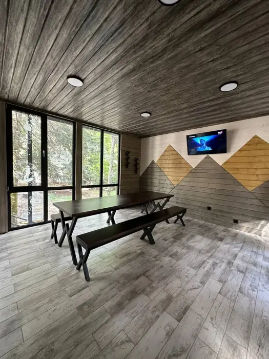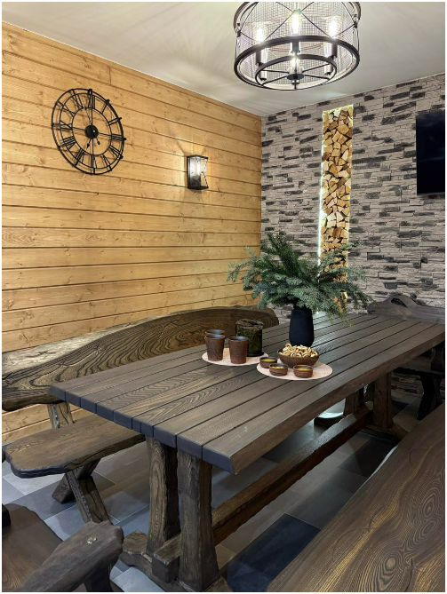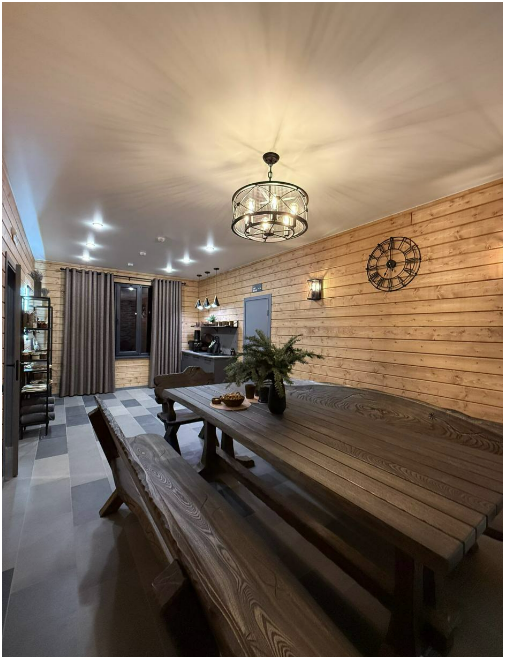 Баня с купелью «Легкий пар»- это идеальное место расслабления как в кругу семьи, так и в компании друзей. Стильный интерьер с элементами лофта, уютная обстановка, разнообразное освещение позволят насладиться отдыхом.