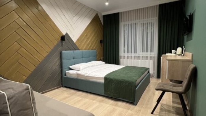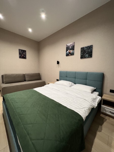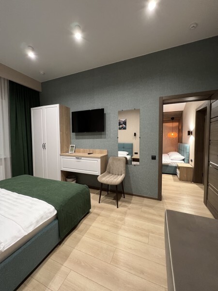 В номере две спальни. В одной спальне двуспальная кровать, в другой спальне двухместный диван-кровать. Оснащение номера: TV, холодильник, электрический чайник, шкаф, санузел с туалетно-косметическими принадлежностями, балкон.