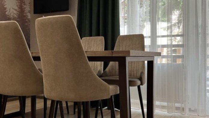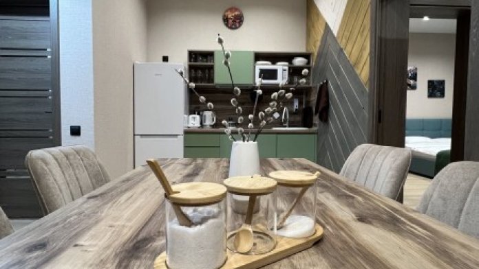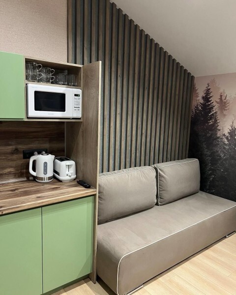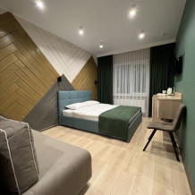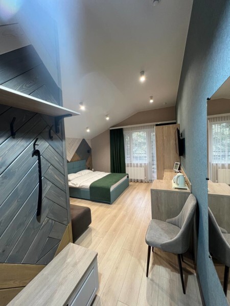 В гостевом доме созданы максимально комфортные условия для Вас и Вашего отдыха. Номера разной категории, комнаты и кухни оборудованы всем необходимым для времяпровождения. Наши уютные номера сочетают в себе городской комфорт и загородную атмосферу. В спальнях удобные кровати, дополнительные диваны, ТВ, холодильники, чайные станции. Для наших гостей мы выбираем косметические средства высокого качества с приятным ароматом. А после душа можно получить тепло, потрясающий комфорт и легкость, укутавшись в мягкий махровый халат.
