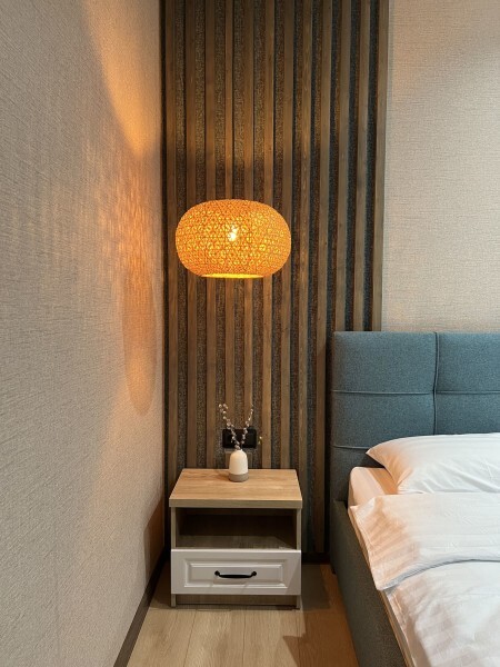 В доме три спальни. Комплектация спален - шкаф для одежды, двуспальная кровать, прикроватные тумбочки, телевизор со Smart TV