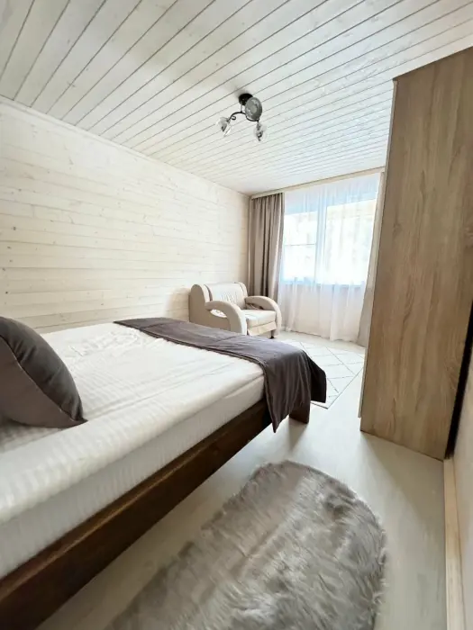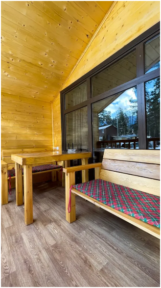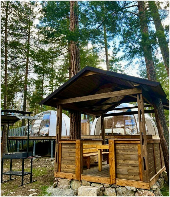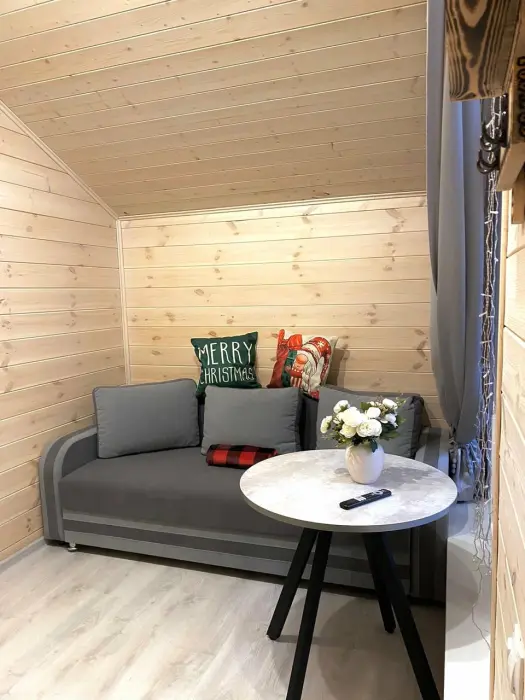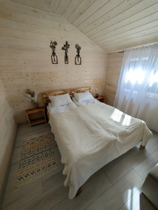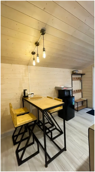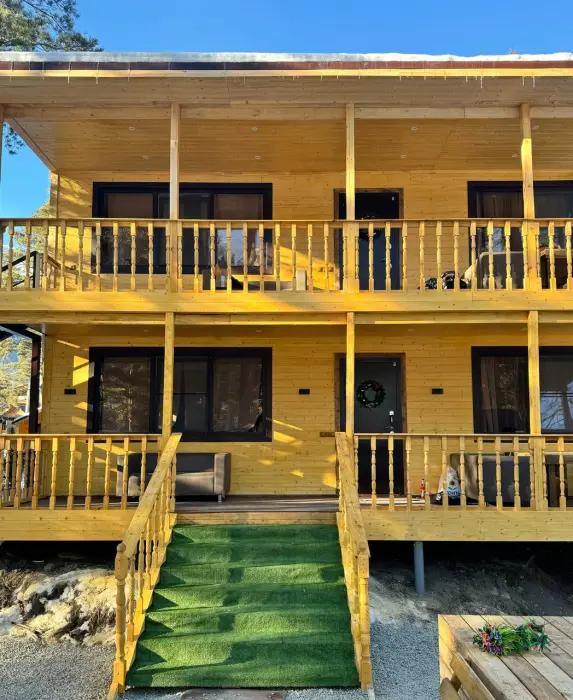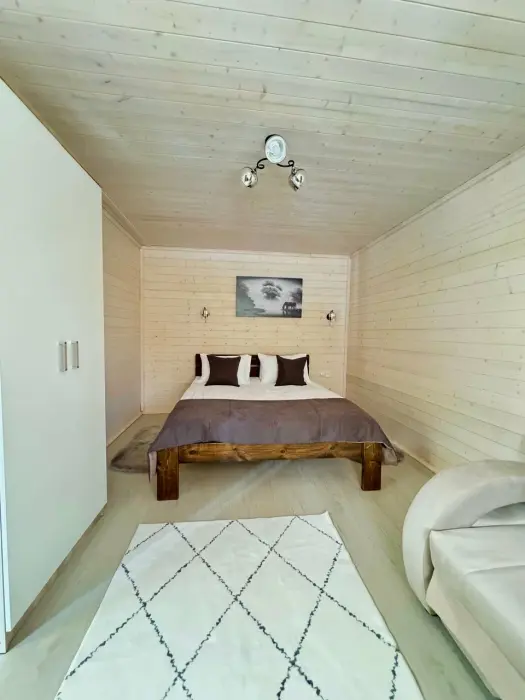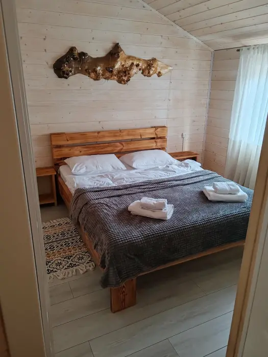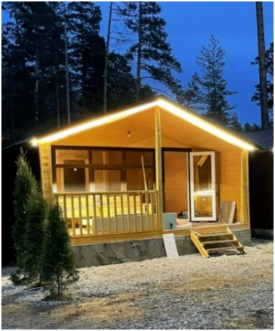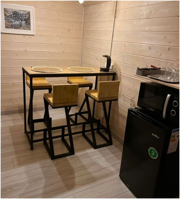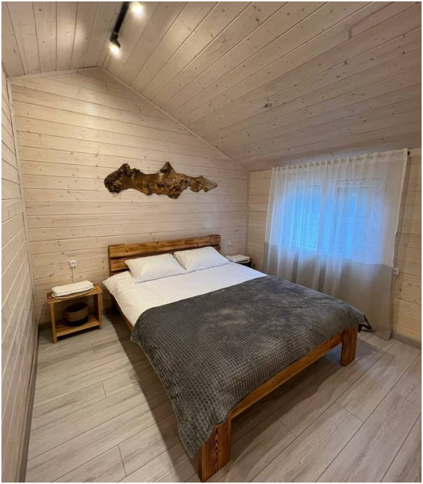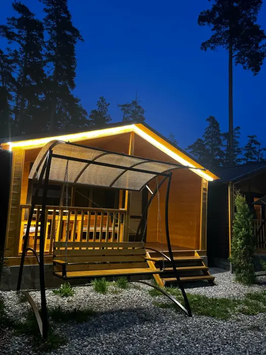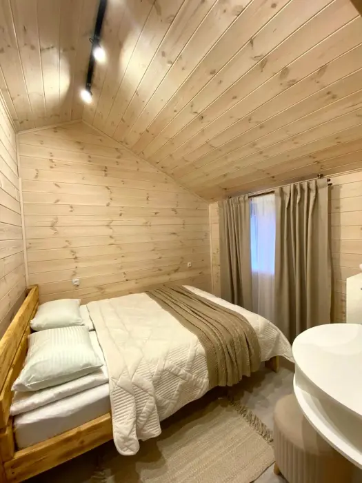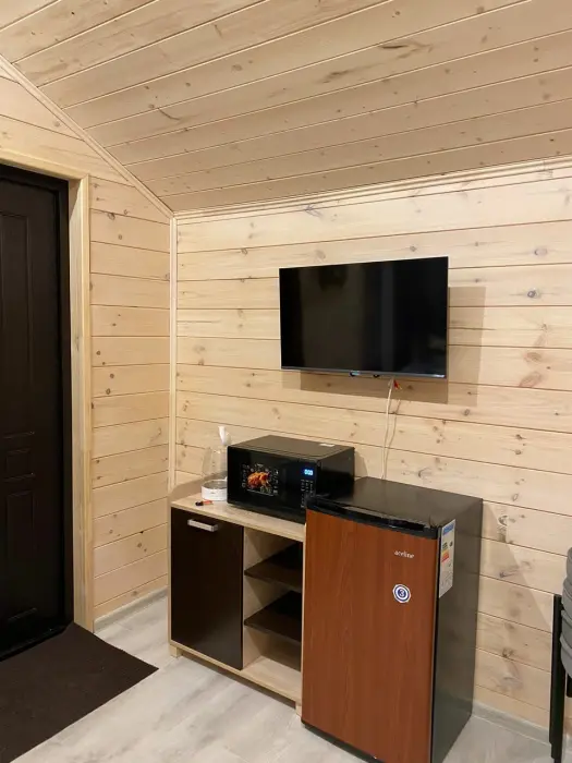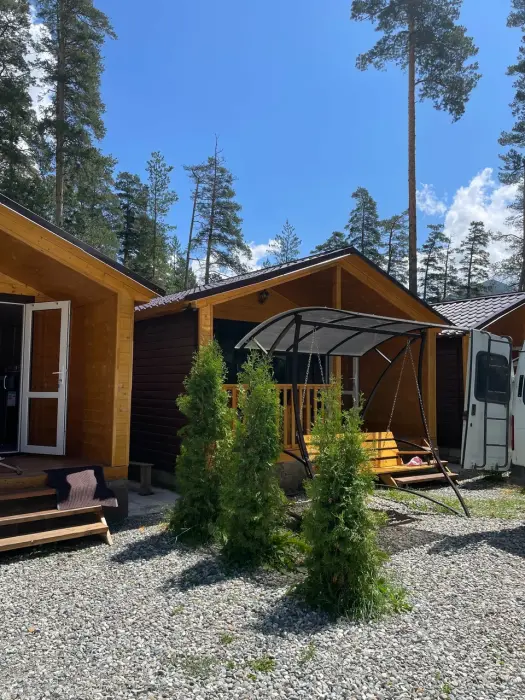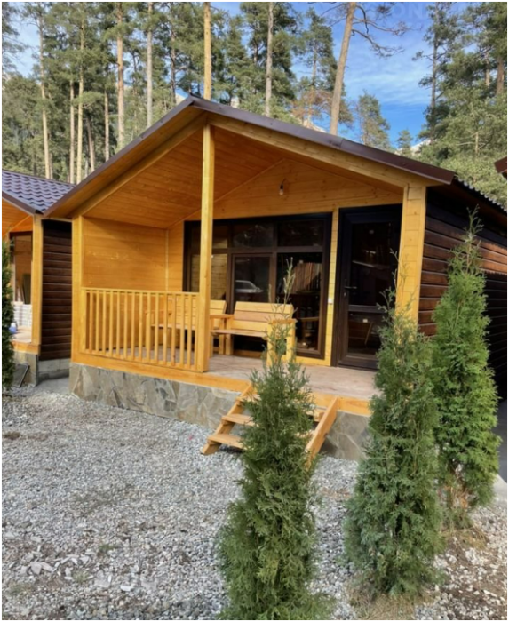 Для размещения гостям предлагают просторные 2-комнатные домики, рассчитаны на 4-5 человек.