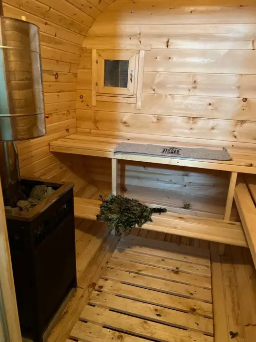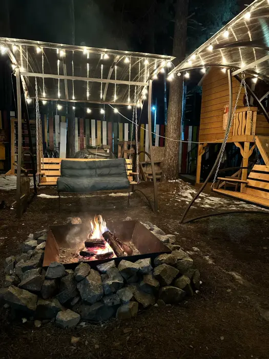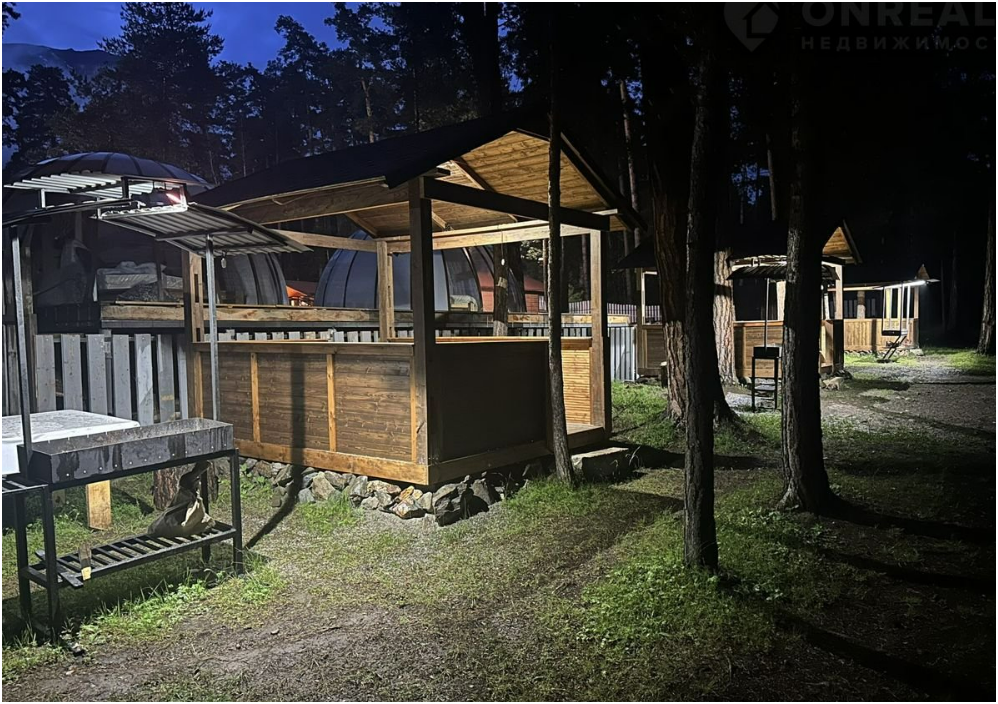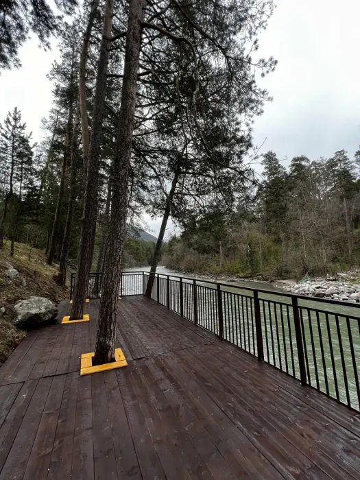 На территории есть парковка, бесплатный Wi-Fi, барбекю-зона с мангалом, баня, чан, детская и смотровая площадки. Можно посетить кафе и насладиться лёгкими закусками. Доступен прокат снаряжения для зимних видов спорта. А также специальная комната для сушки и хранения. К территории примыкает отличная прогулочная зона по набережной реки.