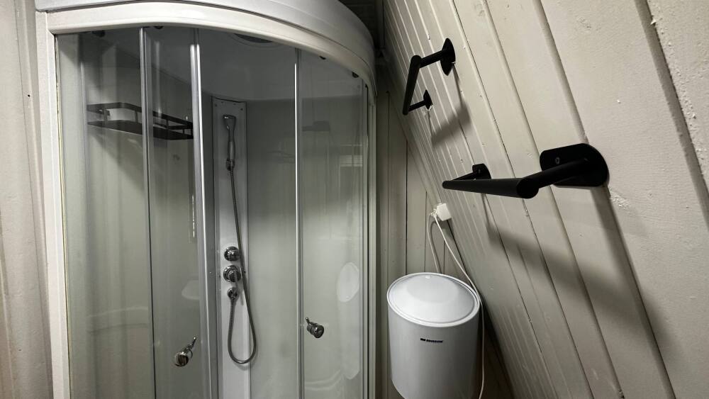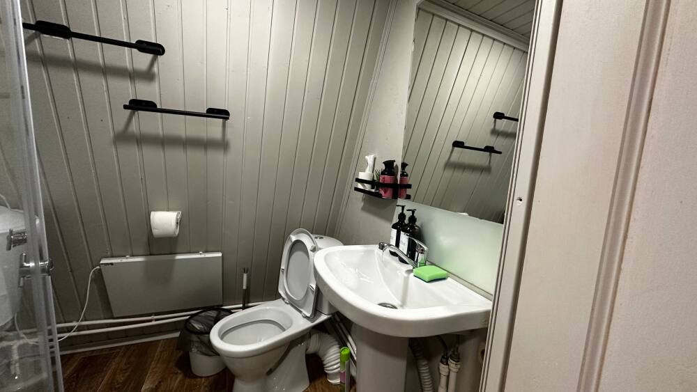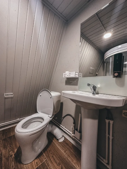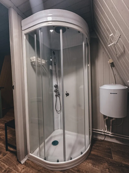 В санузле расположена душевая кабина, туалет, раковина, необходимый набор для гигиены, полотенца и тапочки для Ваших удобств.