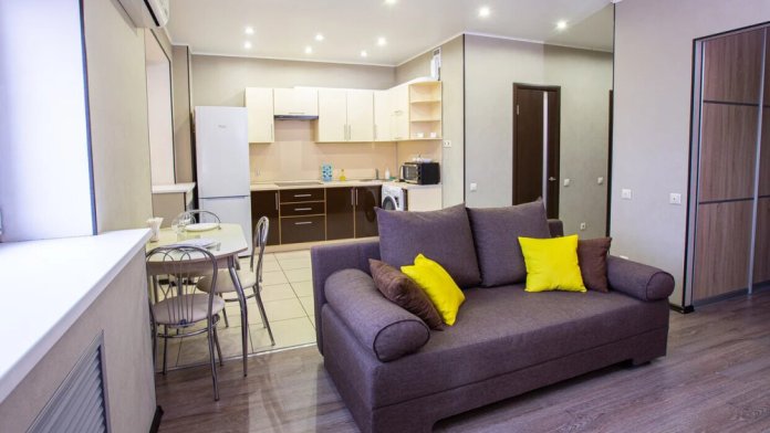 У нас Вы найдете все необходимое для комфортного проживания. Для Вас в квартире имеется двуспальная кровать с ортопедическим матрасом, гарантирующим Вам отличный сон. Мы бережем нежные детские сны, поэтому предоставляем кроватку бесплатно. Также, у нас есть раскладной диван для дополнительного размещения гостей. Мы заботимся о Вашем здоровье, поэтому используем гипоаллергенное постельное белье, выполненное из 100% хлопка. Насладитесь совместным завтраком на просторной белой кухне. Вам не придется задумываться о наличии необходимой утвари, все уже продумано за Вас. На кухне есть стиральная машина, микроволновка, чайник. Рекомендуем Вам встретить закат на панорамной лоджии, закутавшись в уютный плед.