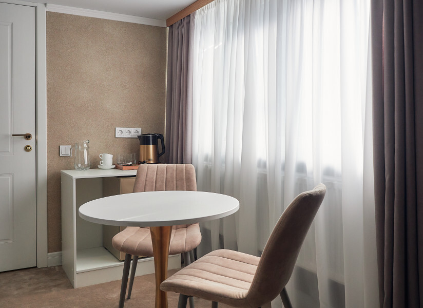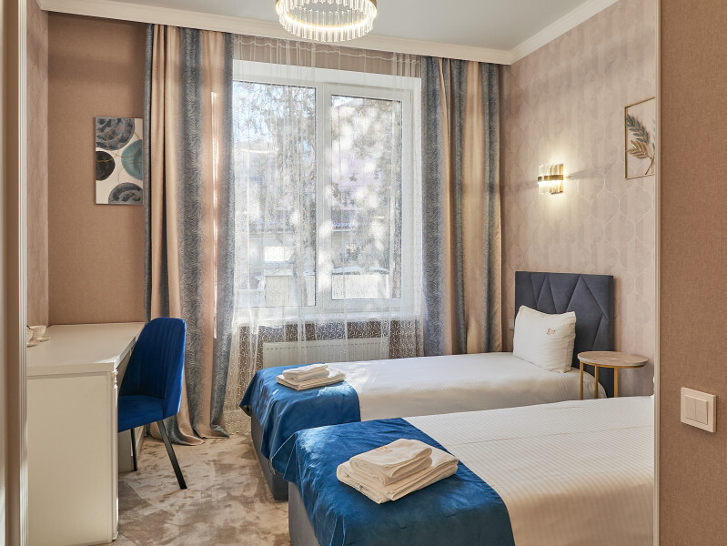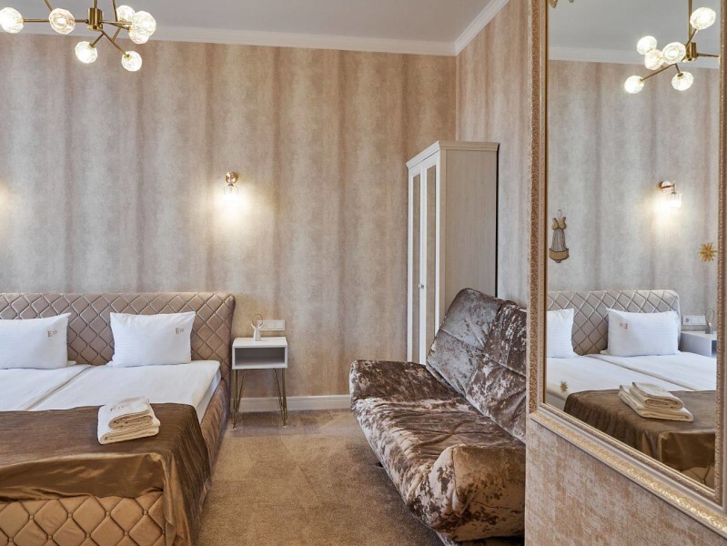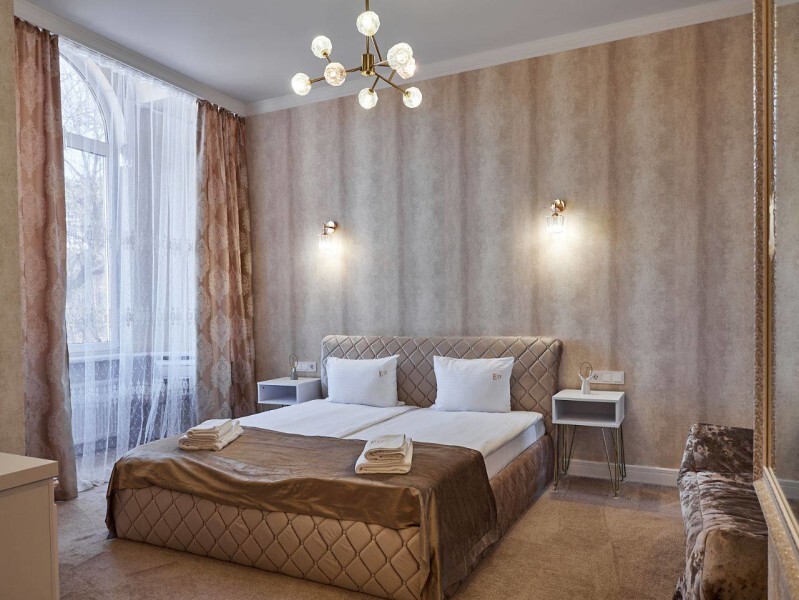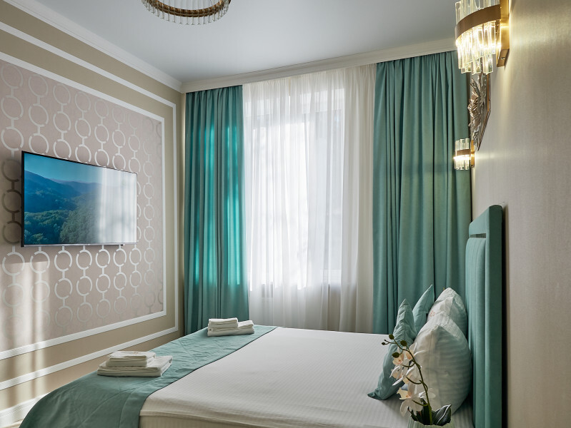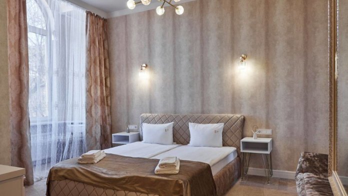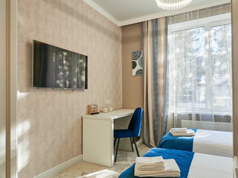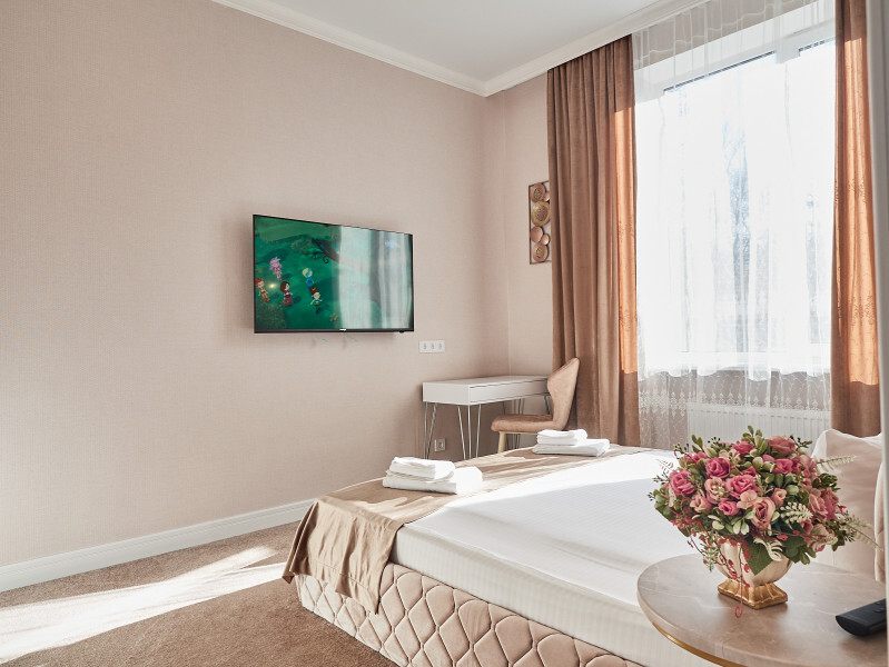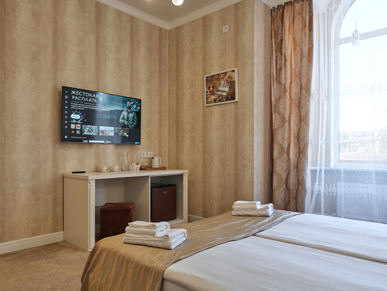 Каждый номер с современным интерьером, оборудован электронными замками. Отель находится в «сердце» г. Кисловодска. В двух шагах от курортного бульвара, и Нарзанной галереи.