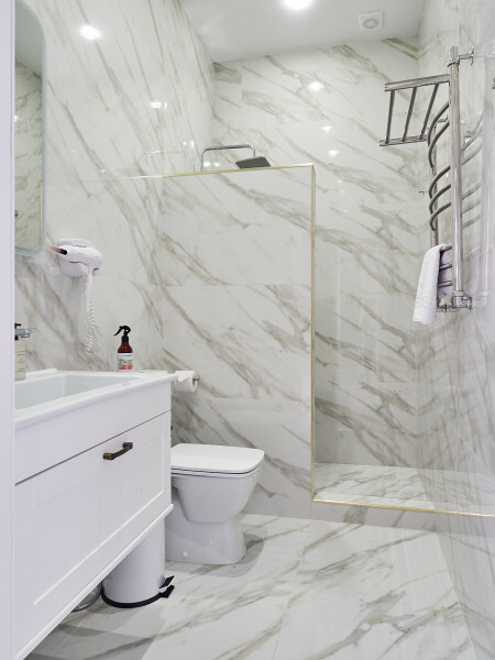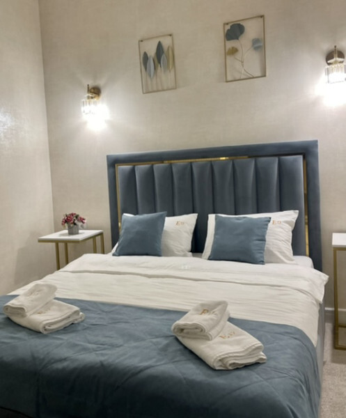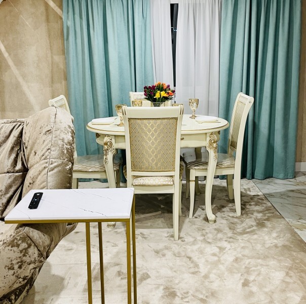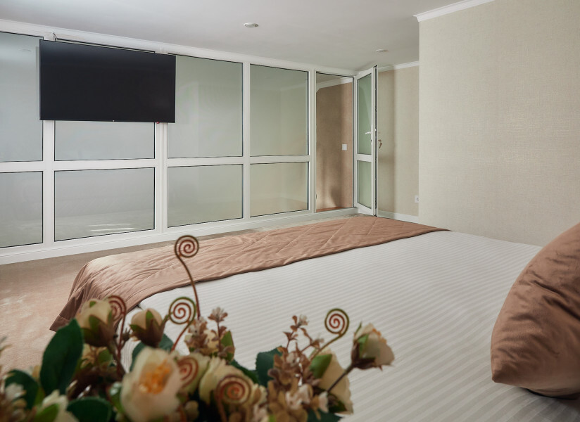 Номер с двуспальной кроватью и 2 диванами. Вмещает 5/6 человек. Большой балкон. Телевизор 55' со smart TV, стиральная машина в номере. Холодильник, чайник, чайный набор. Отличный вариант для семьи.