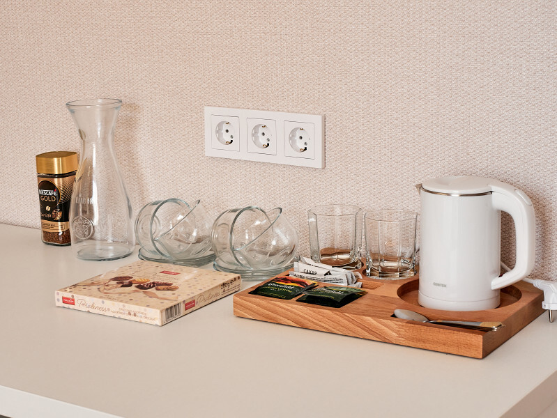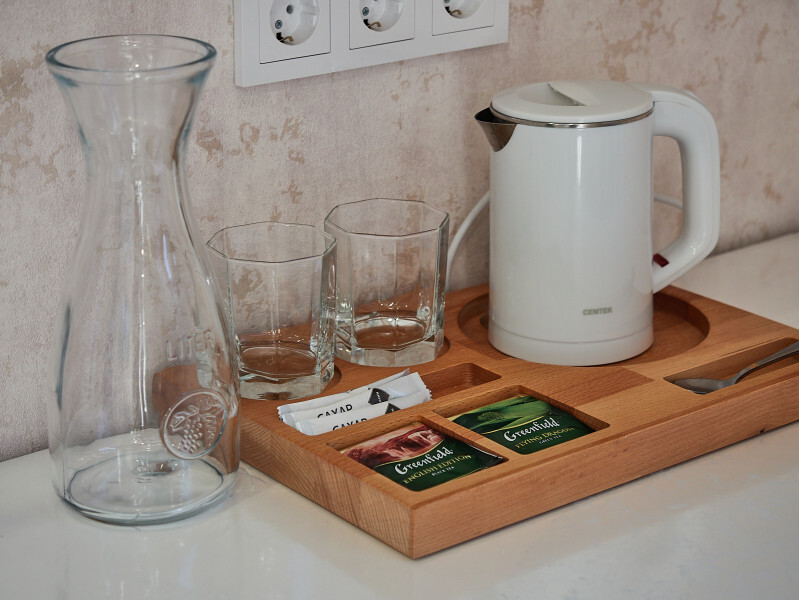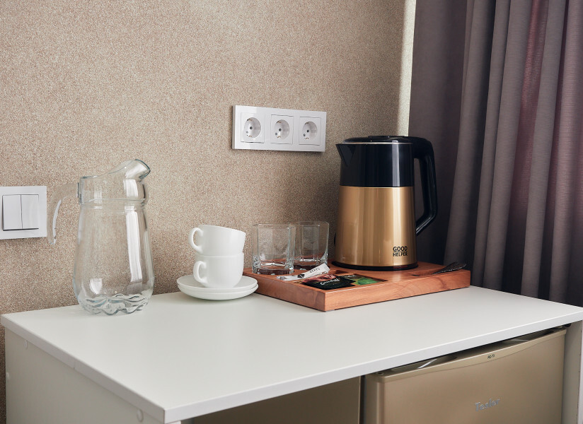 В каждом номере предоставляется: халаты, тапочки, средства гигиены, фен, чайная станция, холодильник. Сплит система.