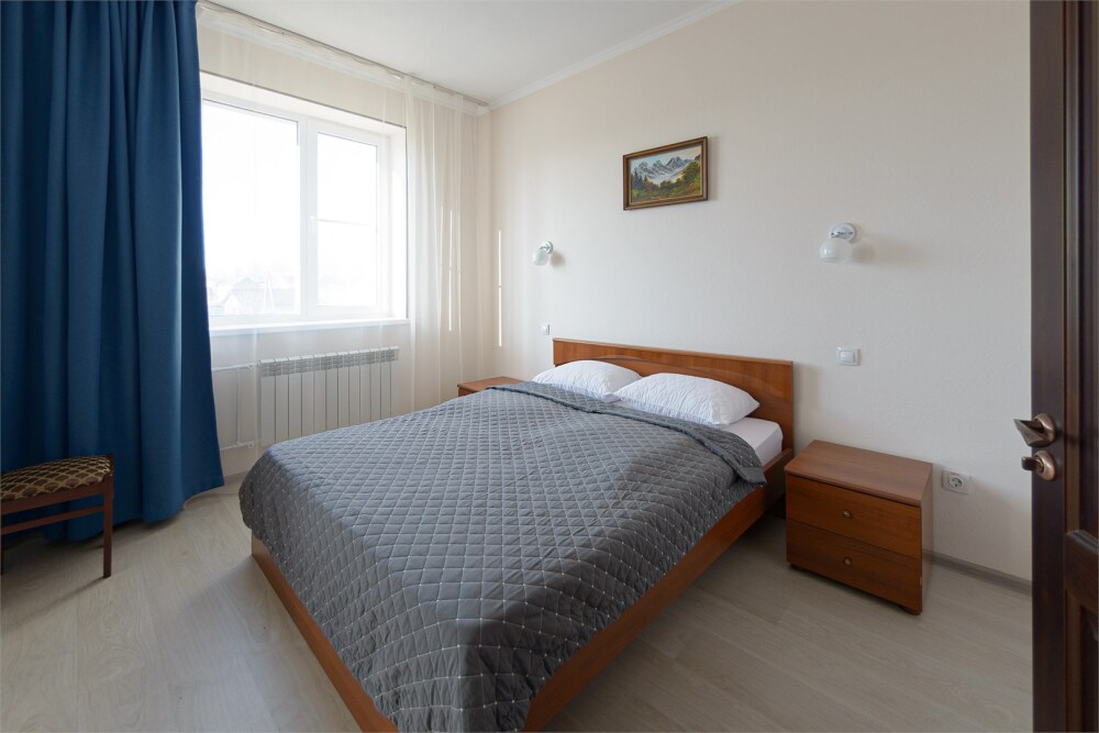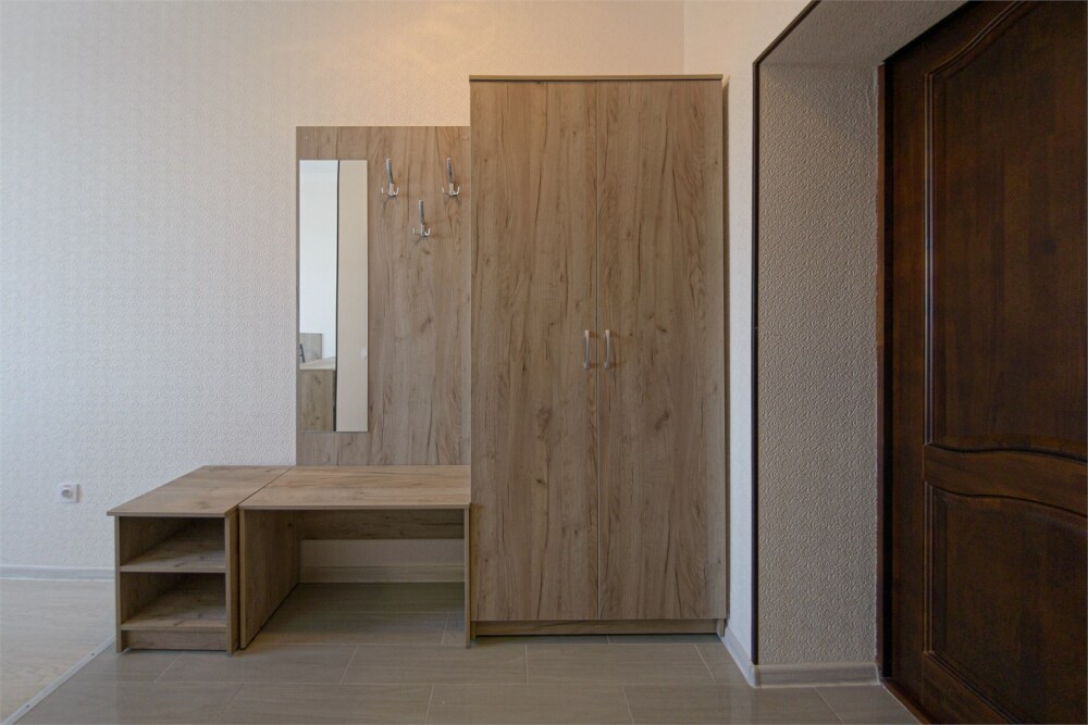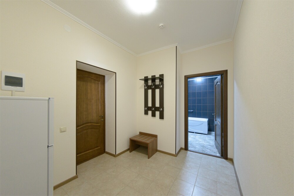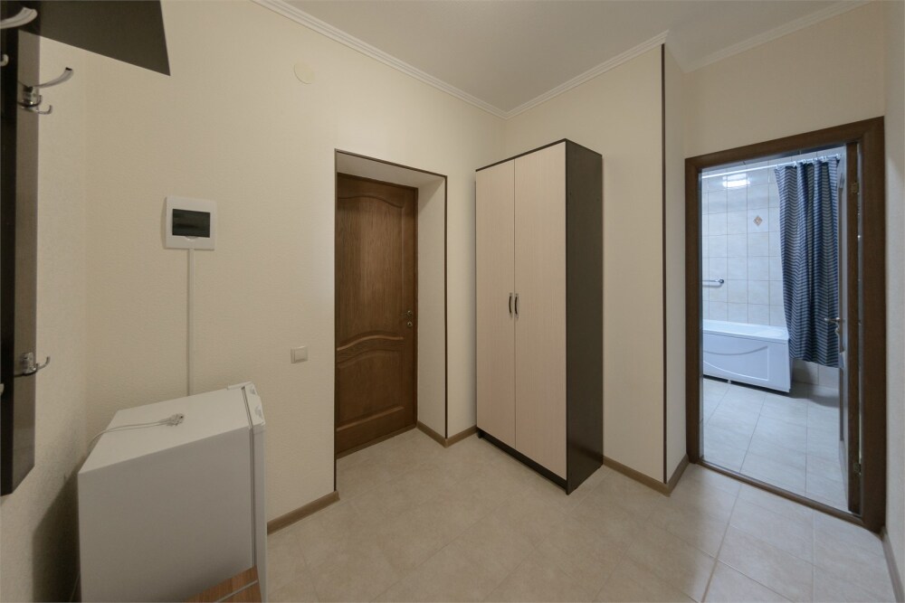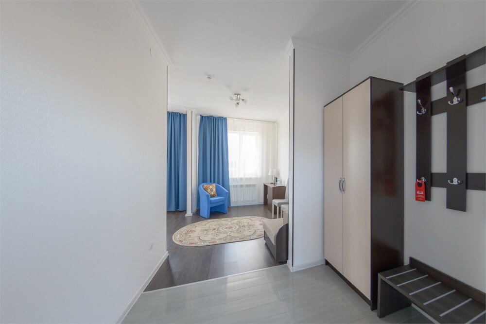 Уютный однокомнатный номер, состоящий из небольшой прихожей и спальной комнаты. В номере удобная современная мебель, 2 две кровати ( 90*200), а так же организованное рабочее пространство с письменным столом.