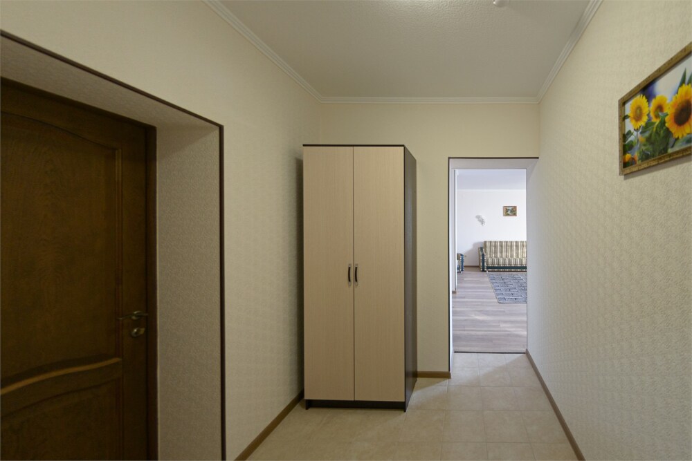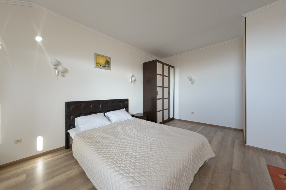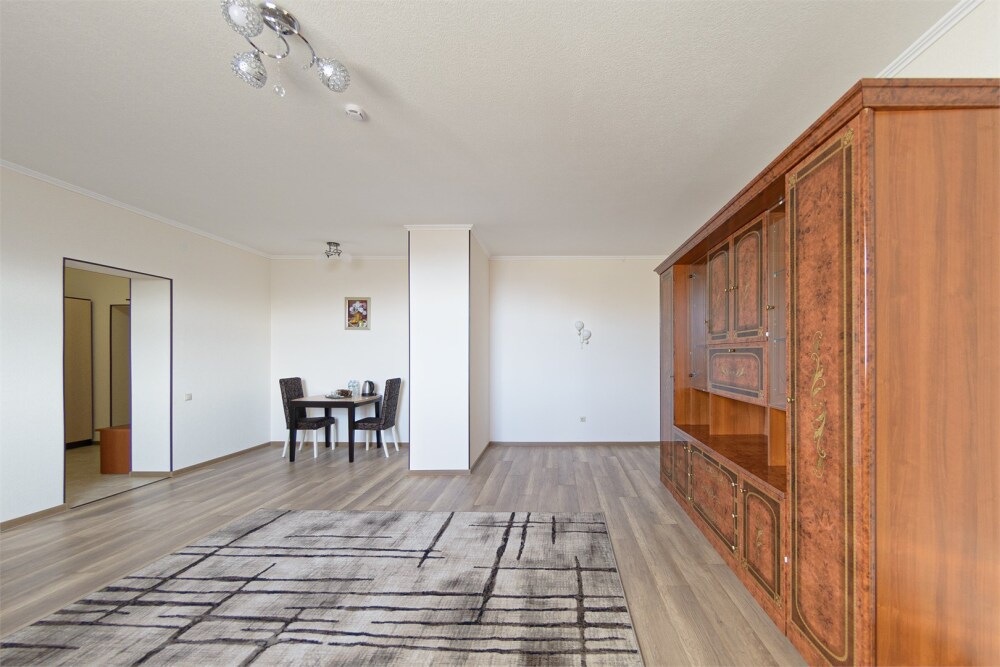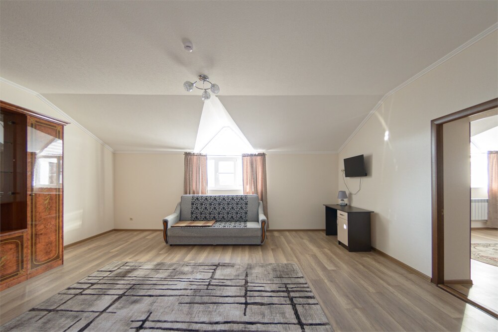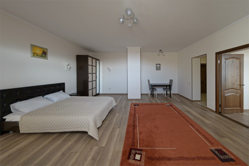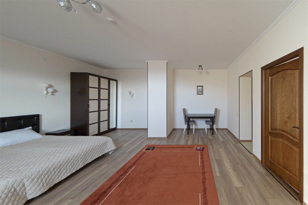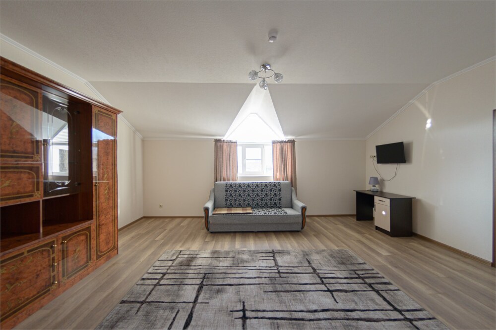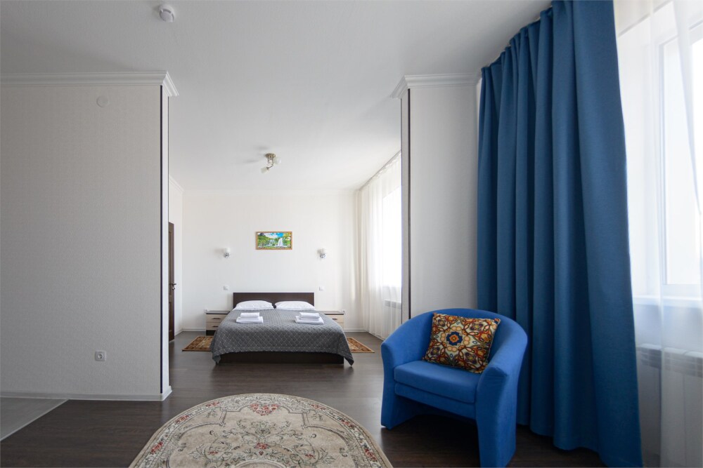 Просторный номер из двух комнат c большой ванной комнатой, располагающий к отдыху интерьер, большая кровать, два кресла-кровати и диван-кровать. Для Вашего комфорта предусмотрена дополнительная мебель: небольшой столик и стулья для Вашего уюта, сюда будет приятно возвращаться после прогулок.