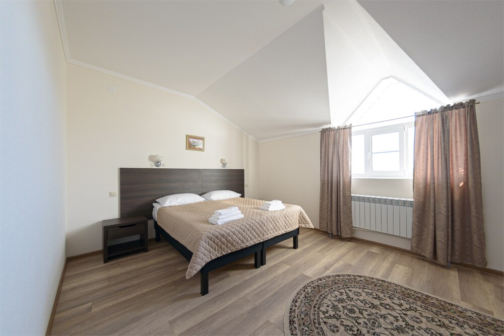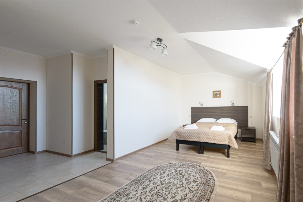 Это новый гостиничный комплекс на 60 номеров и апартаментов. На благоустроенной территории отеля имеется автостоянка. К услугам гостей уютные номера разных категорий и вместимости, а также кафе в котором можно попробовать блюда из жареной, вареной и соленой форели.