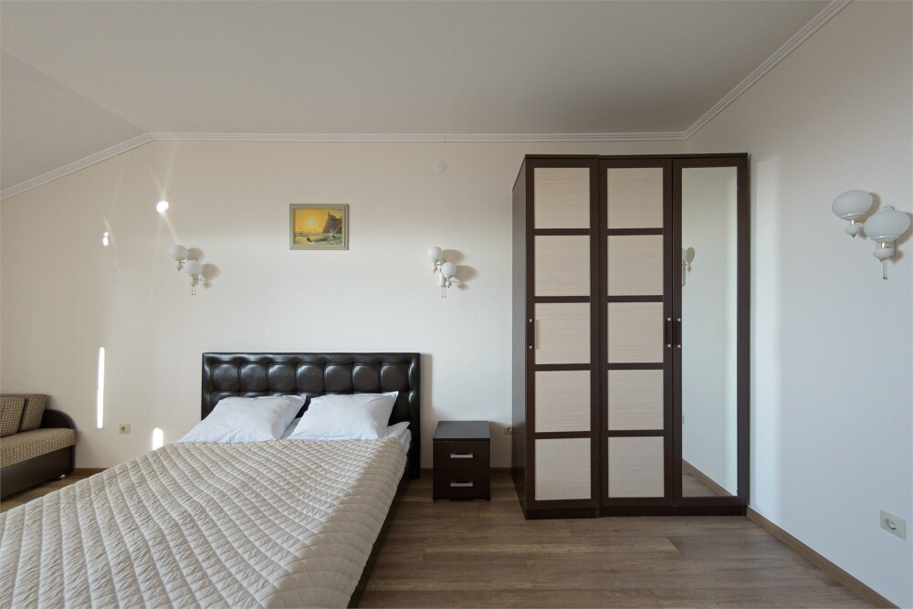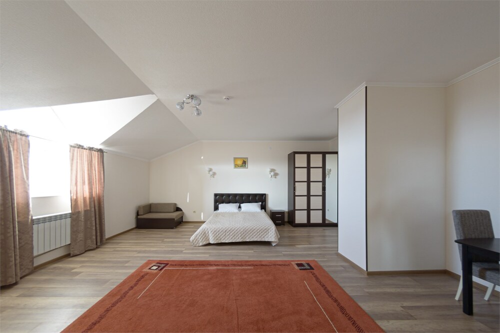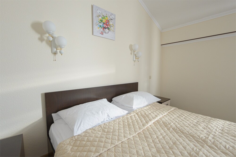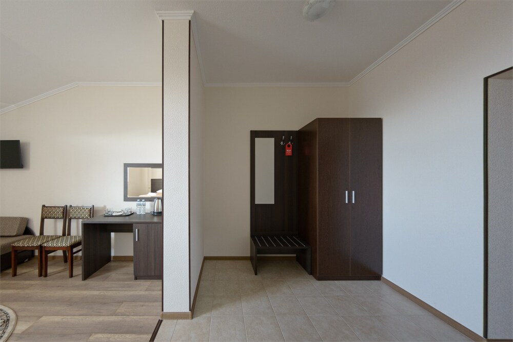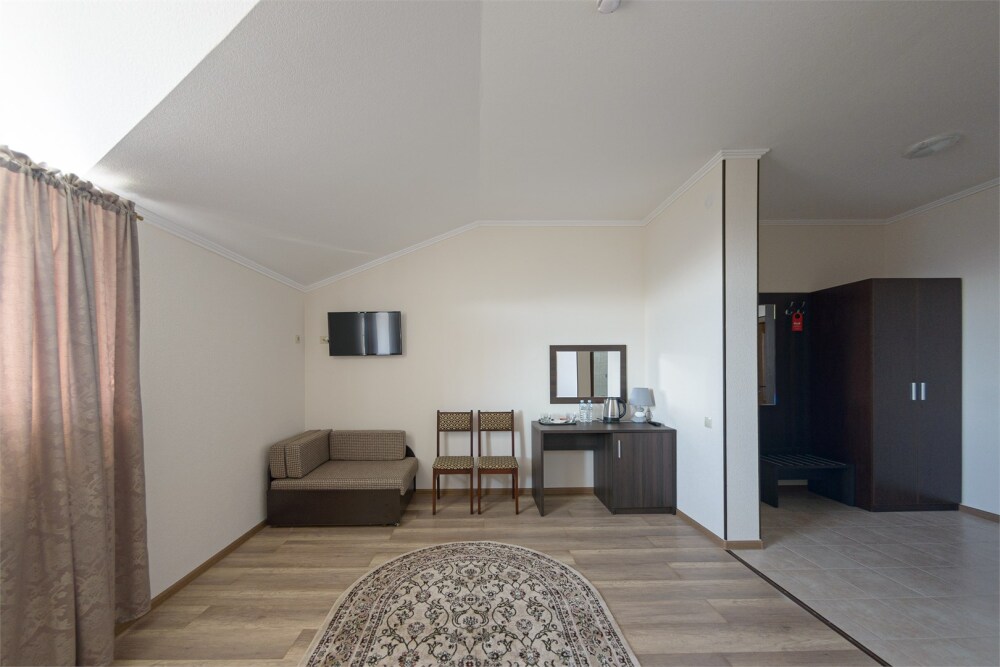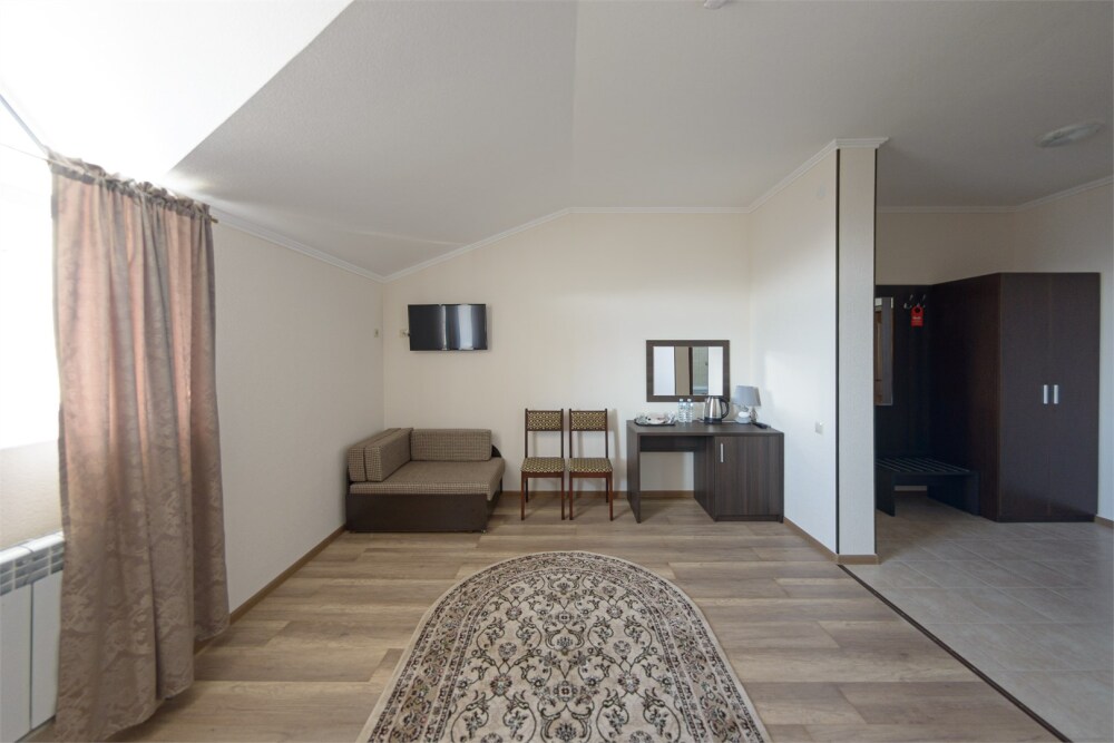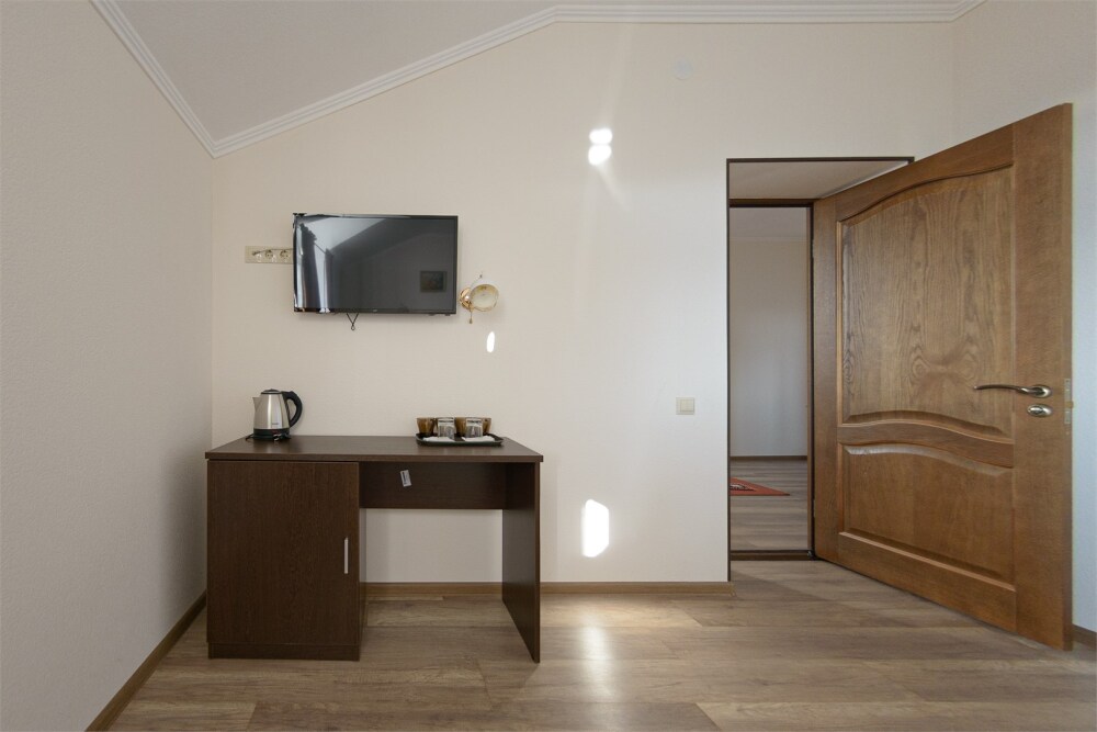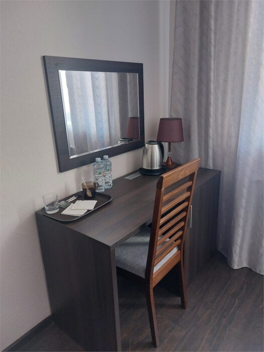 Номер также оснащен необходимой мебелью для приятного времяпрепровождения и комфорта (письменный стол, стулья, полноценная просторная ванная комната). Wi-fi в холле отеля.