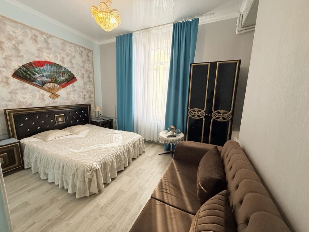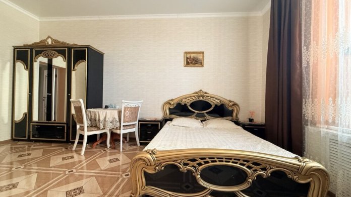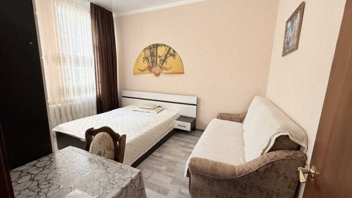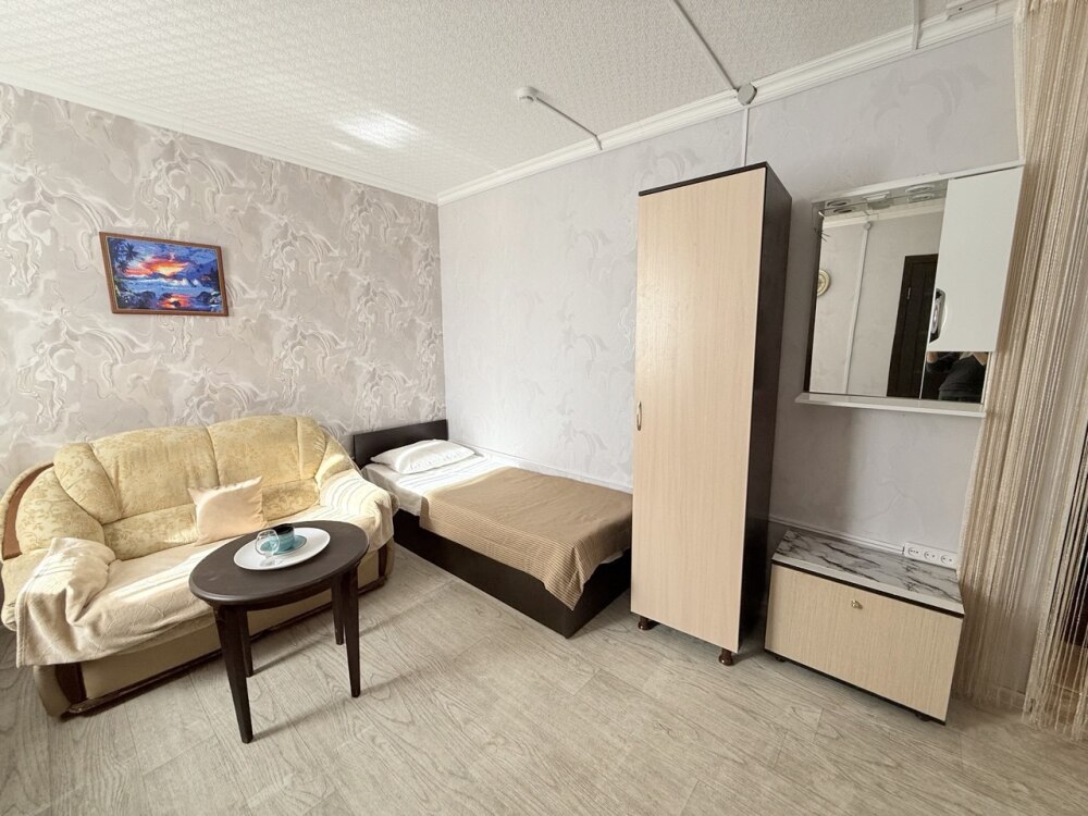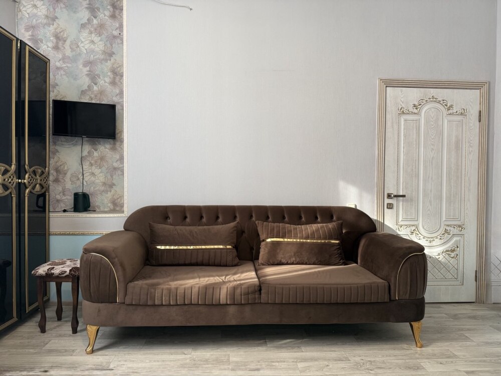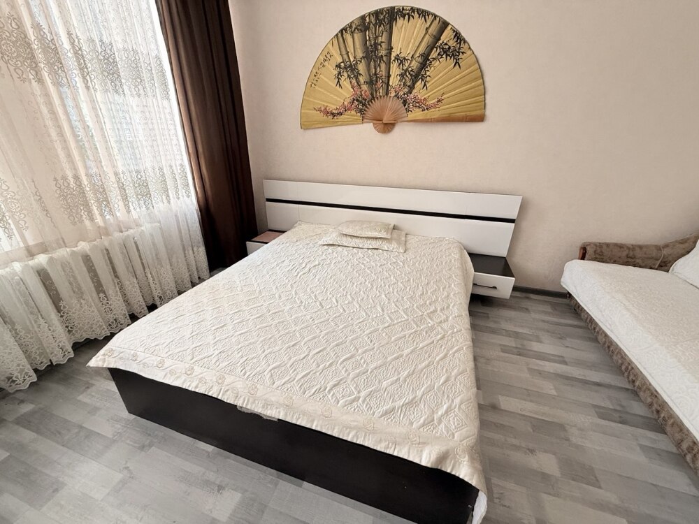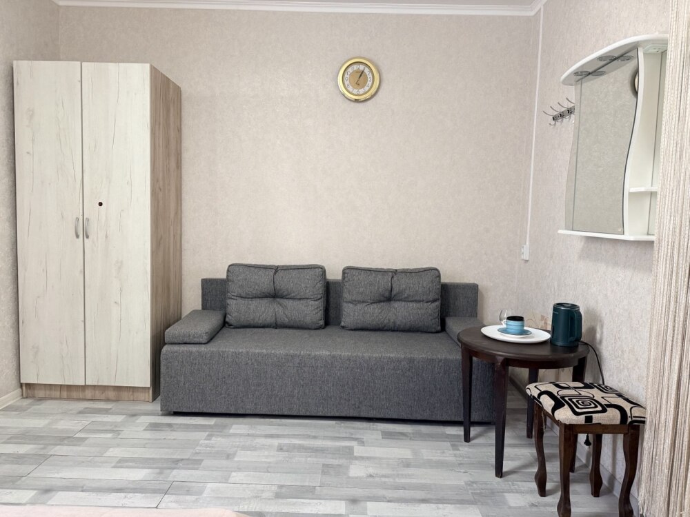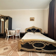 Комфортный номер с двуспальной кроватью и диваном. Удобен для семьи с ребенком.