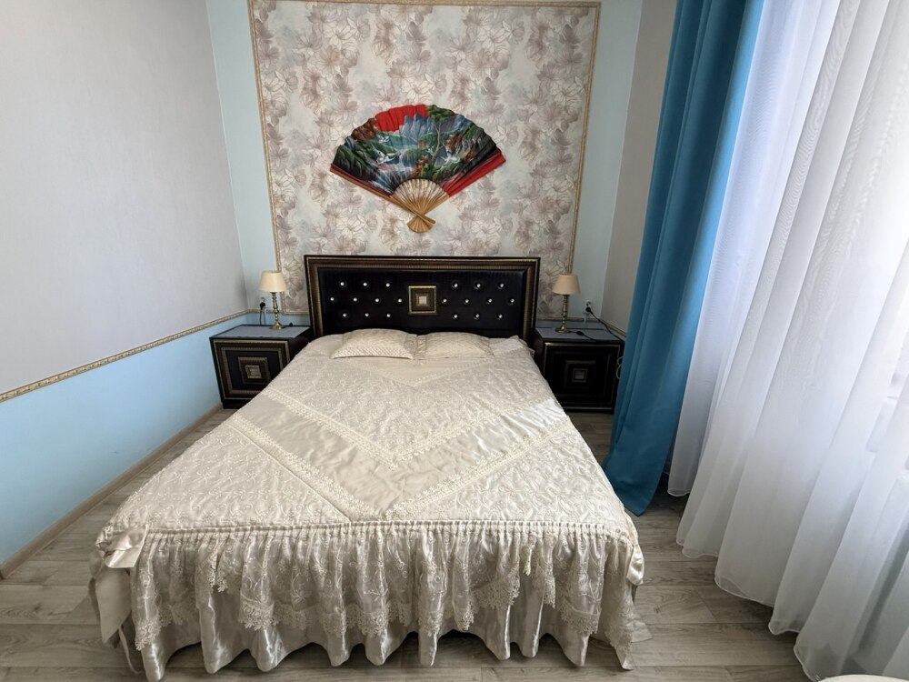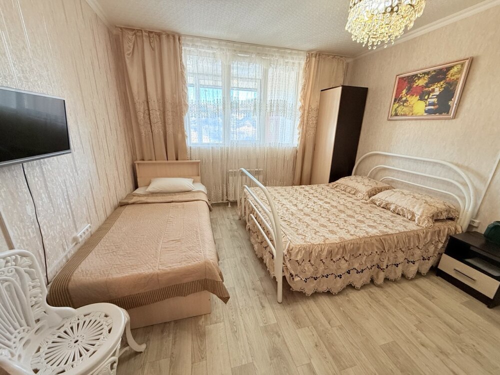 Во второй спальне - две односпальные кровати кровати, раскладывающийся диван. В ванной комнате - ванна и душ.