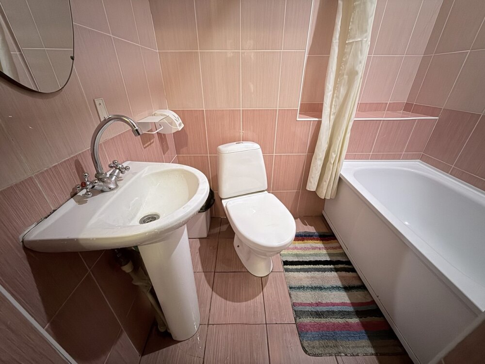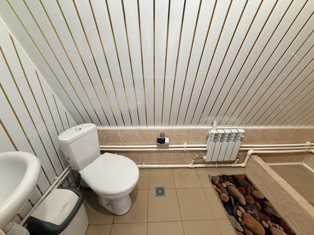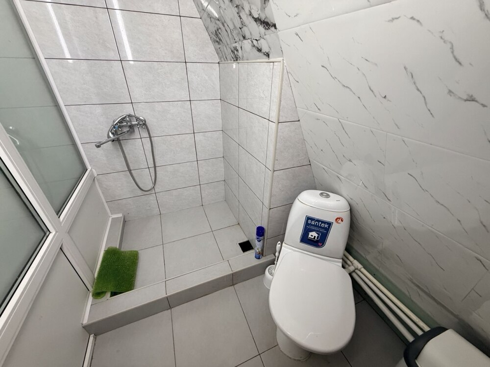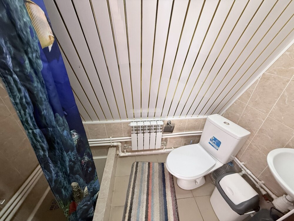 Санузел находится рядом с номером за стенкой.