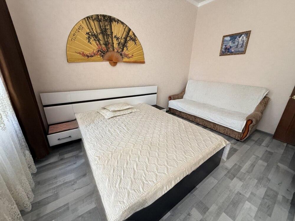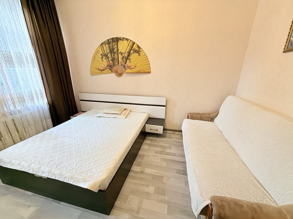 В первой спальне - двуспальная кровать и раскладывающийся диван.