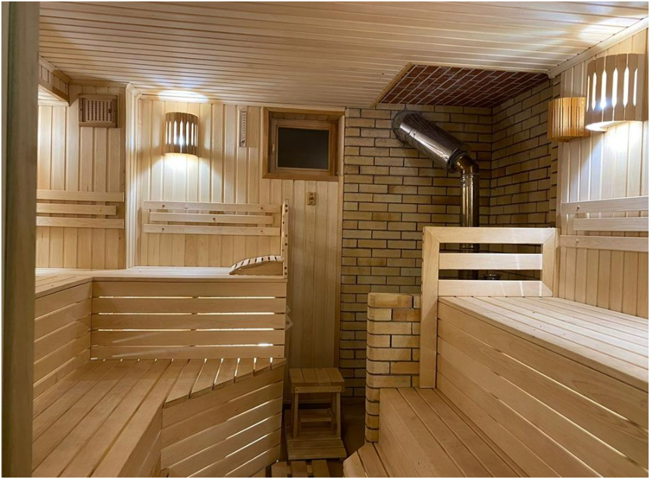 - Сауна до 15 гостей с большим бассейном (мангальная зона, зал для отдыха с чайной зоной, кухонная зона, обливания с холодной водой, душевая, подвесное ведро для облива (кадка), Теплый стол (мыльня));