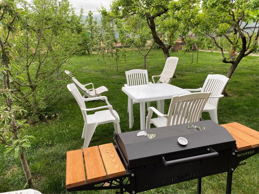 Если Вы мечтали выпить чашечку горячего кофе или горного чая и при этом любоваться величественным Эльбрусом в гамаке, шезлонге, стоящими в саду - то Вам именно к нам. Прекрасные виды на горы и сад, заставят Вас вернутся в наш уютный уголок. Особенно счастливы детки. Можно лежать на шезлонге и принимать воздушные «ванны».
