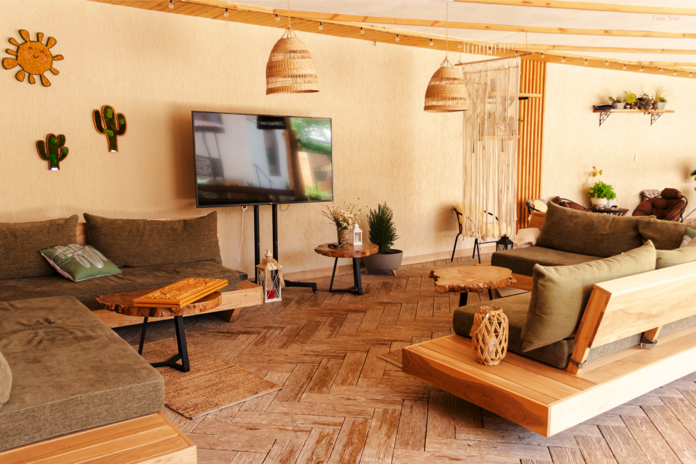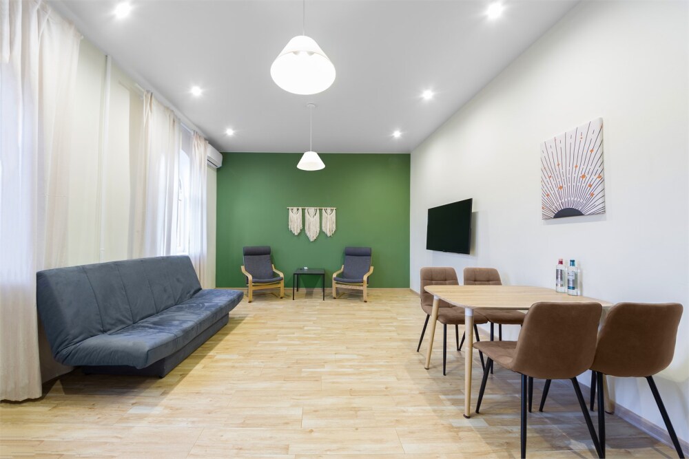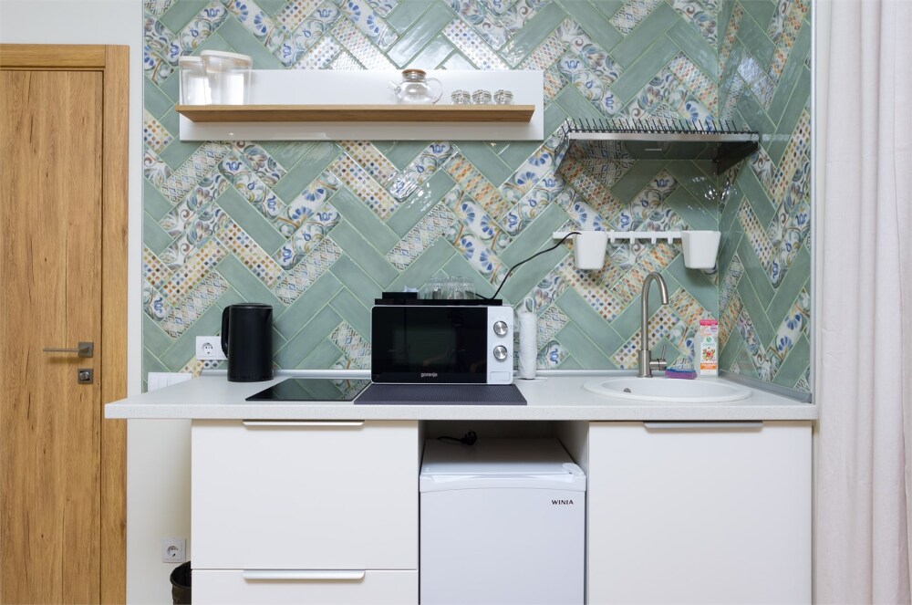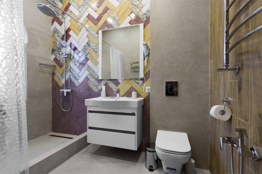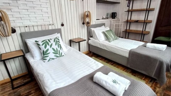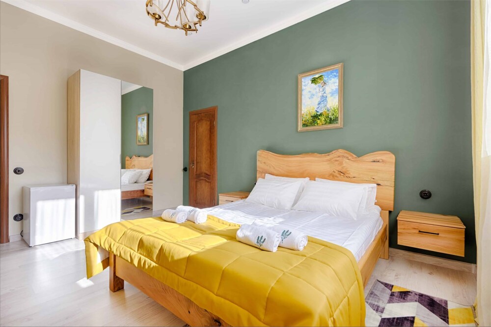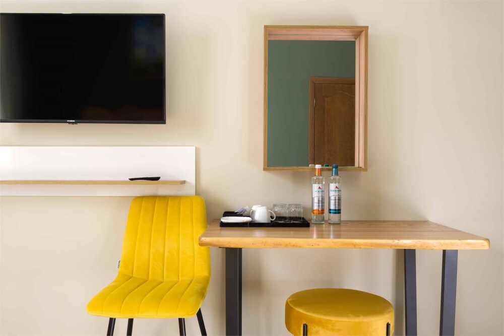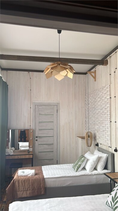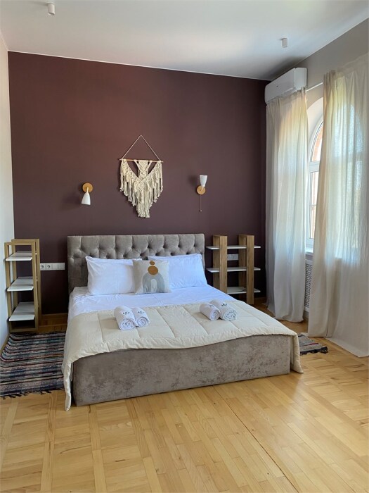 Однокомнатный комфортный номер в стиле Бохо площадью 23 кв.м. может разместить до 4 гостей (с условием дополнительного спального места), обустроен кроватью размера Queen size (160х200), ЖК-телевизором, диваном, мини-холодильником, чайным набором. В ванной есть халаты, полотенца, средства для душа и фен.