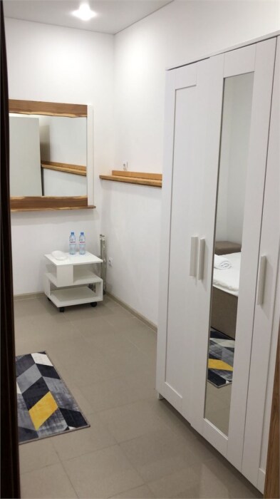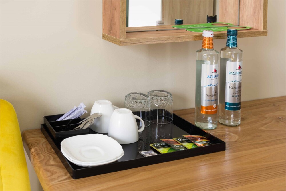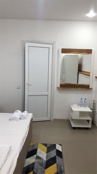 Однокомнатный номер площадью 18 кв.м., предназначенный для двухместного размещения, обустроен кроватью размера Queensize (160х200), ЖК-телевизором, мини-холодильником, чайным набором, кондиционером. В ванной есть халаты, полотенца, средства для душа и фен.