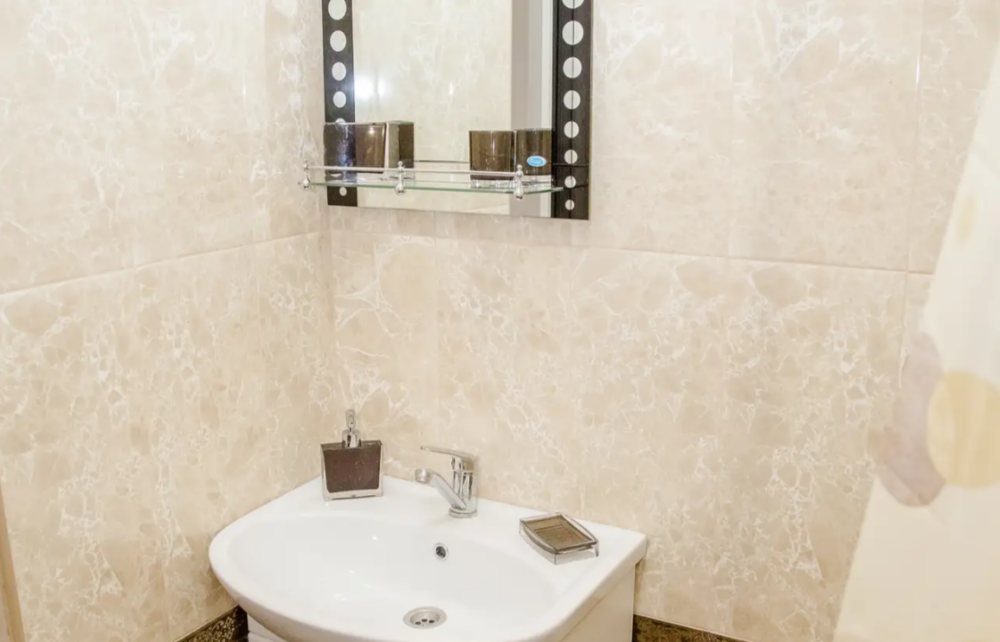 Вблизи от дома есть продуктовые магазины, в 4 минутах ходьбы. За рекой - парк, стадион, карусели.