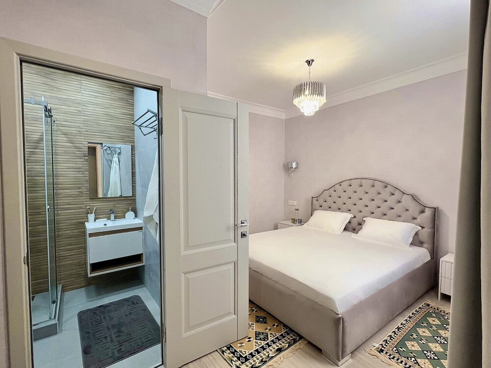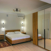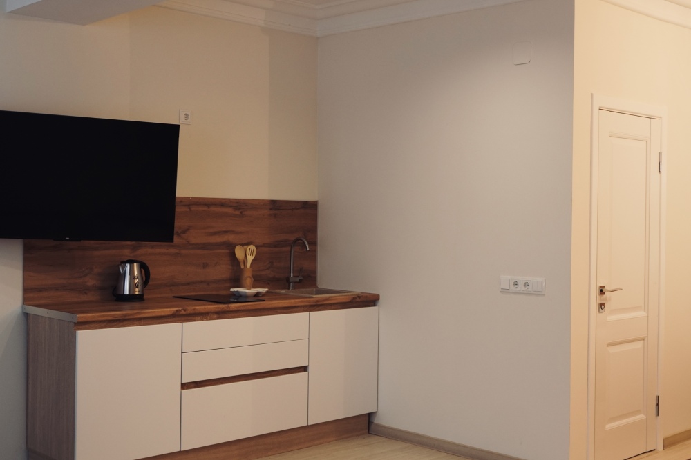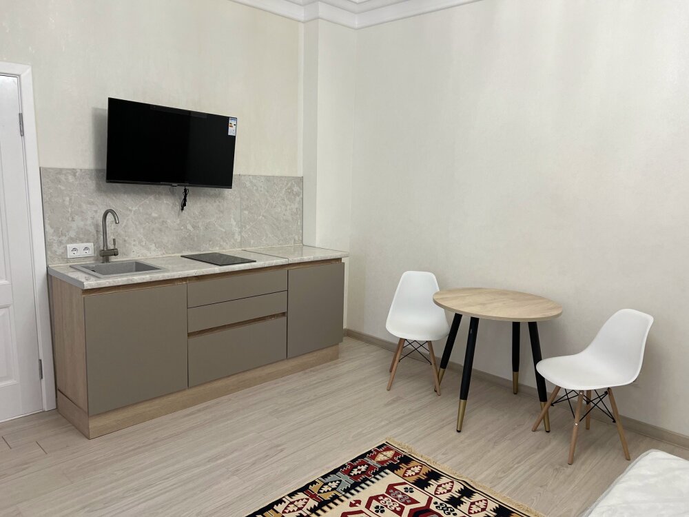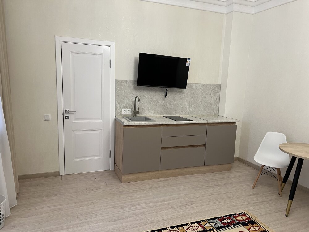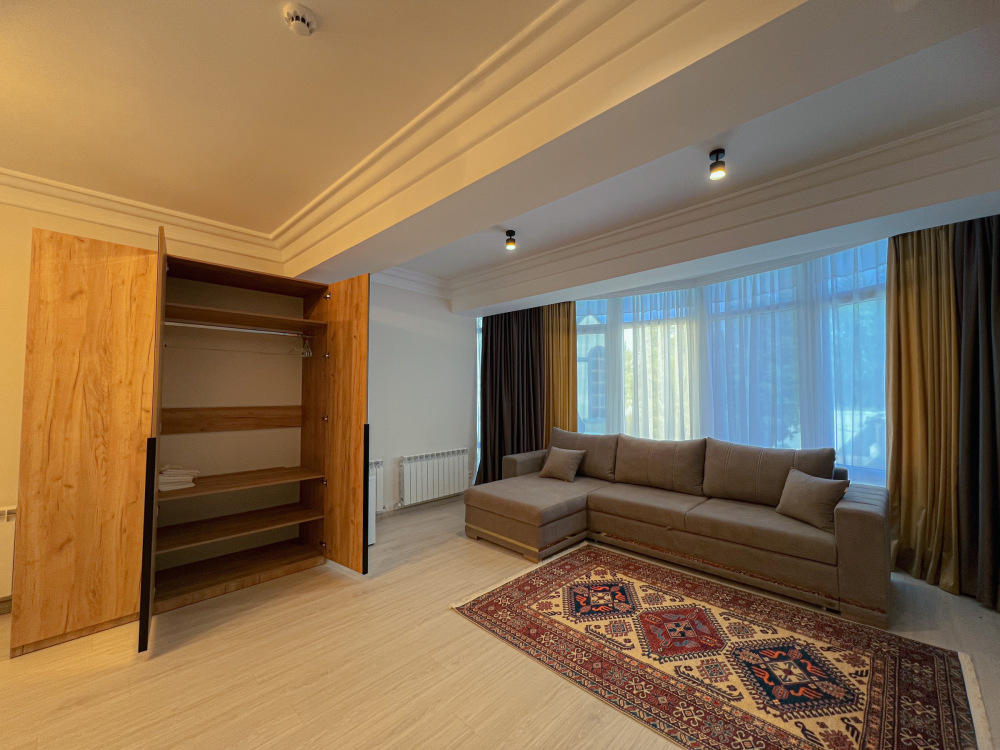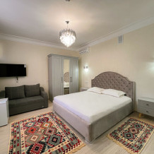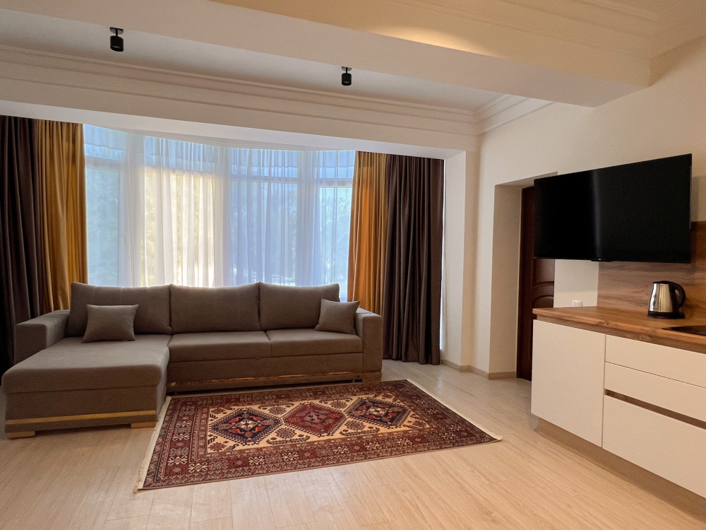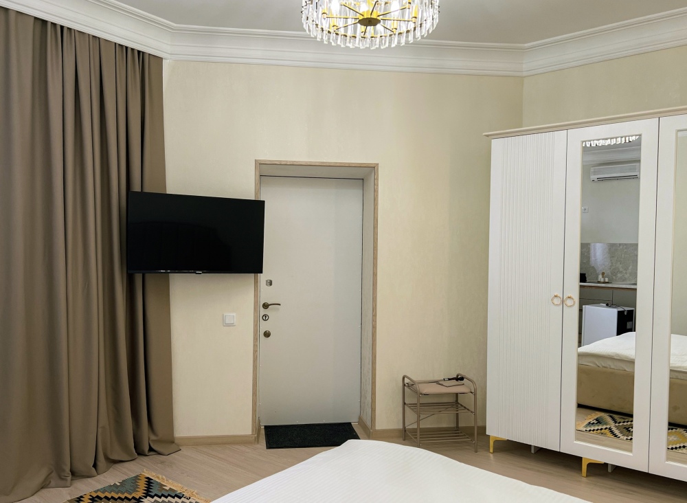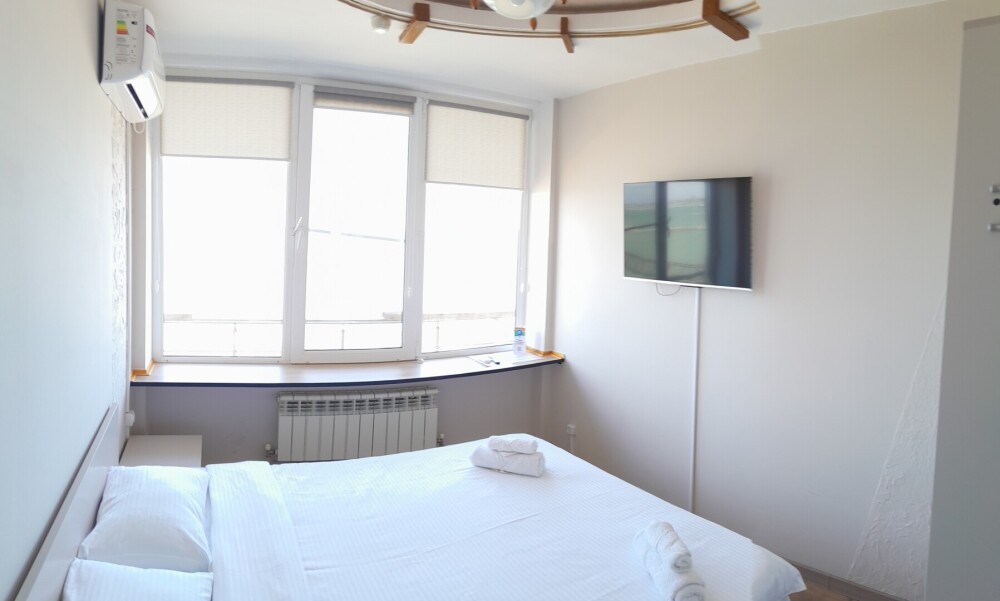 Двухспальная кровать, большой диван, кондиционер, телевизор, кухня, возможность дополнительного размещения двух человек.