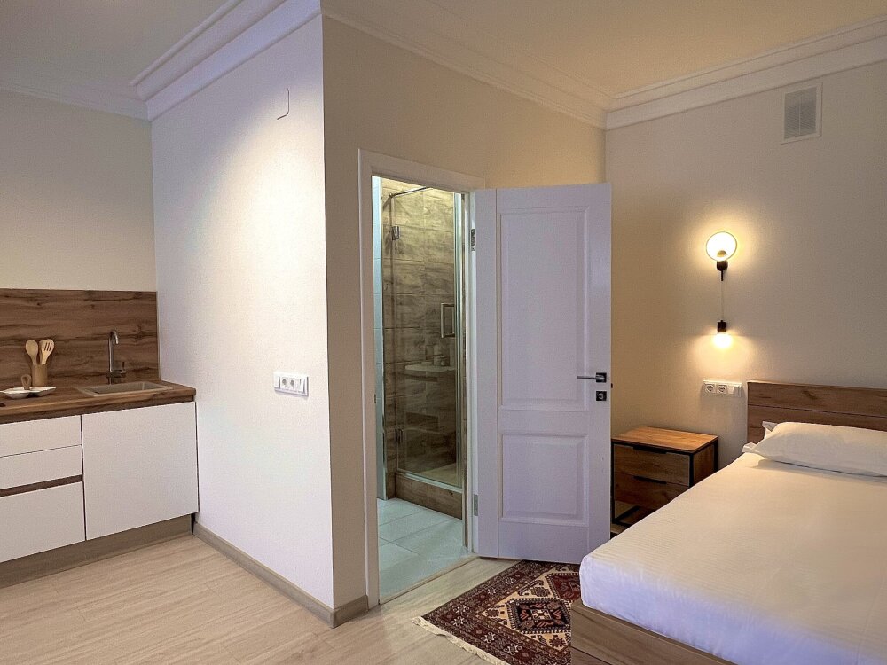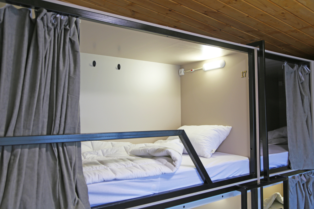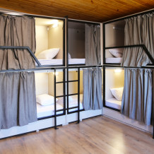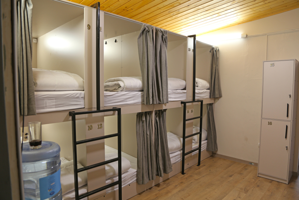 Для бронирования доступны номера категорий Эконом, Стандарт, Комфорт и общие номера для мужчин и женщин на 6 и 8 человек. В общих номерах – капсульные кровати с освещением, розеткой и вентиляцией, шкафчики, зеркало, кондиционер, общий санузел и душевая. В номерах Эконом, Стандарт, Комфорт – кровать, телевизор, шкаф, кондиционер. В некоторых номерах есть кухня и собственный санузел.