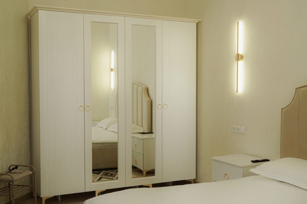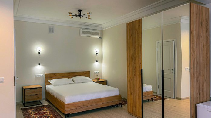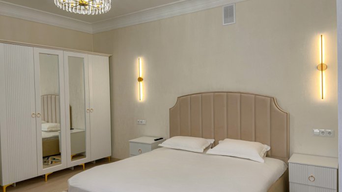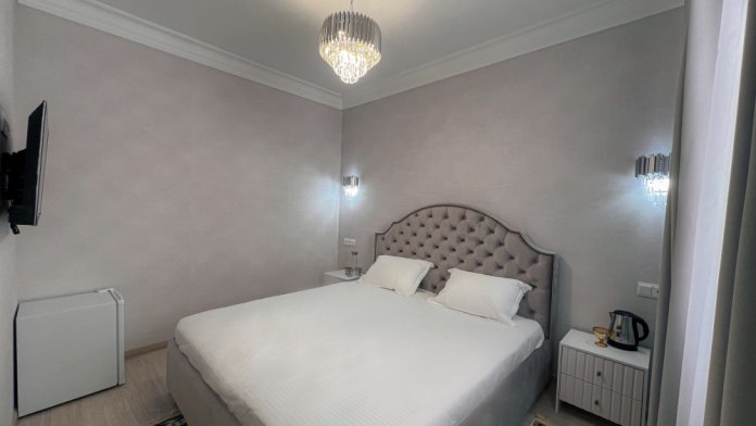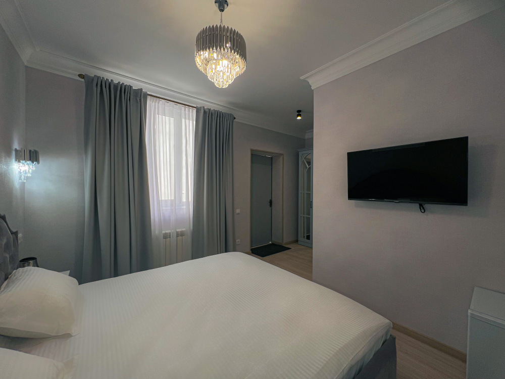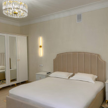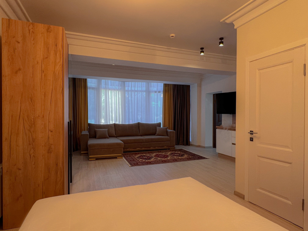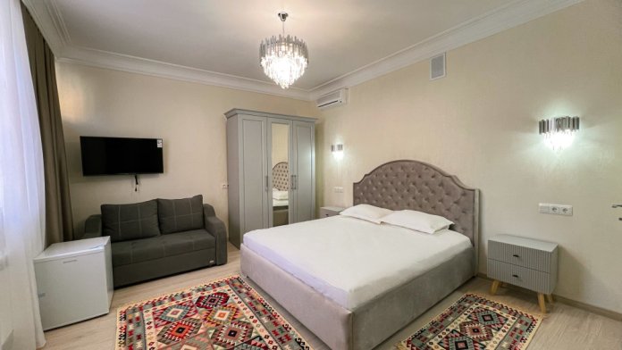 Двухспальная кровать, диван, кондиционер, телевизор, возможность дополнительного размещения одного человека.