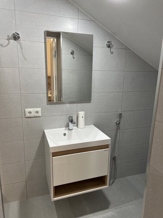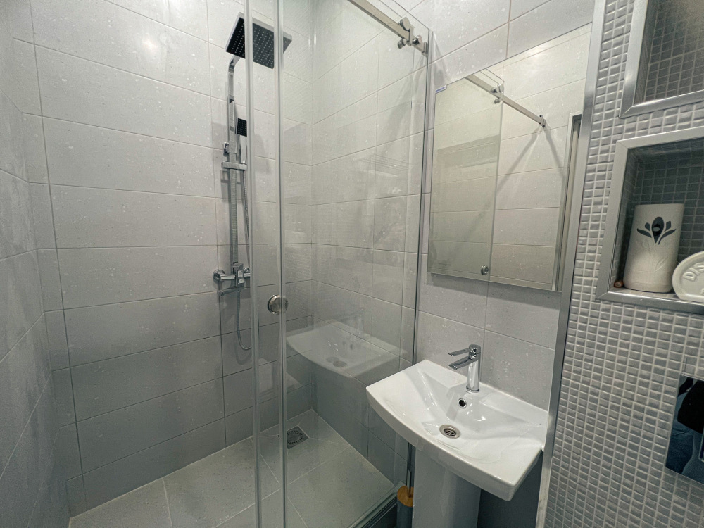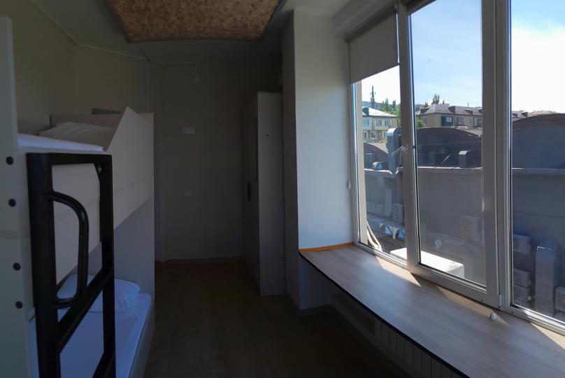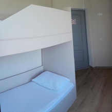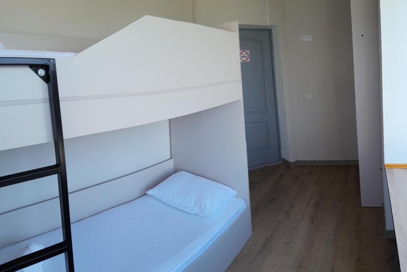 Двухъярусная кровать, общий санузел и душевая, кондиционер, шкаф, зеркало.