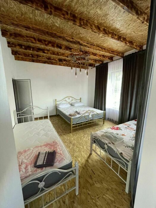 В комнате: 3 односпальные кровати или 1 двуспальная кровать и 2 односпальных кроватей.