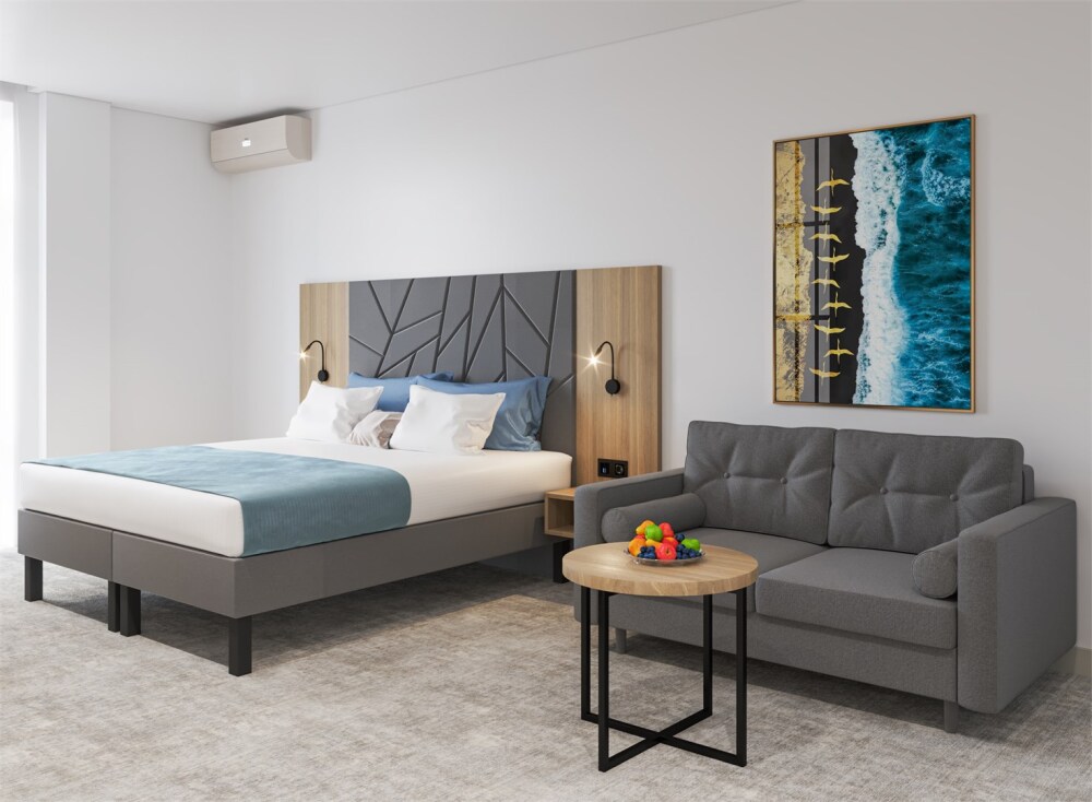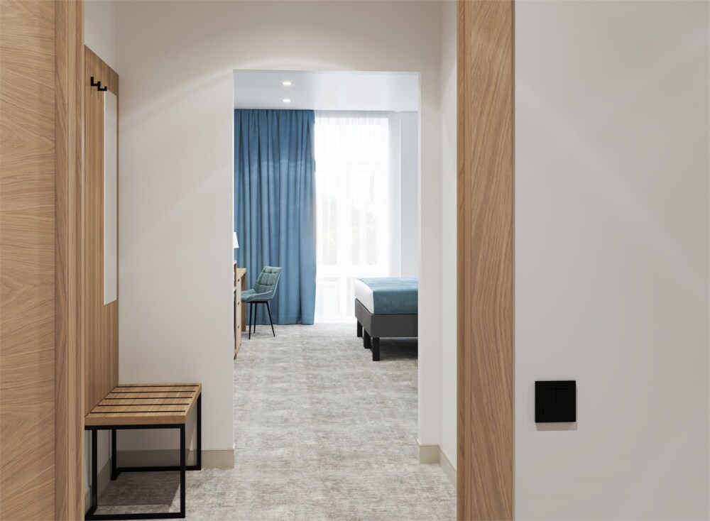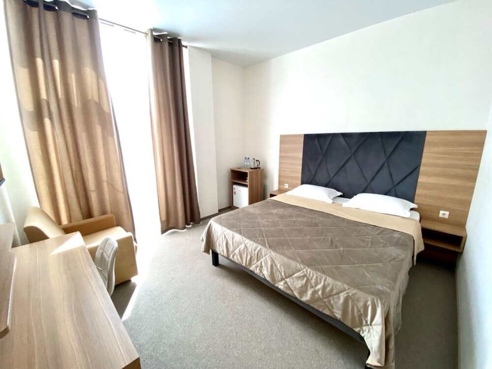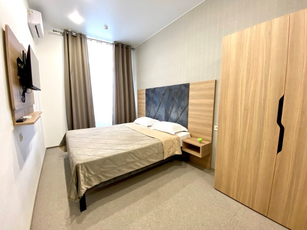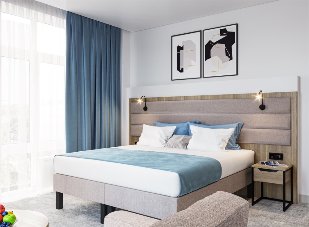 Интерьеры оформлены современным стилем и обставлены стильной мебелью, чтобы гости чувствовали себя как дома. Кровати с мягкими матрасами и свежим постельным бельем обеспечивают спокойный и комфортный сон.
