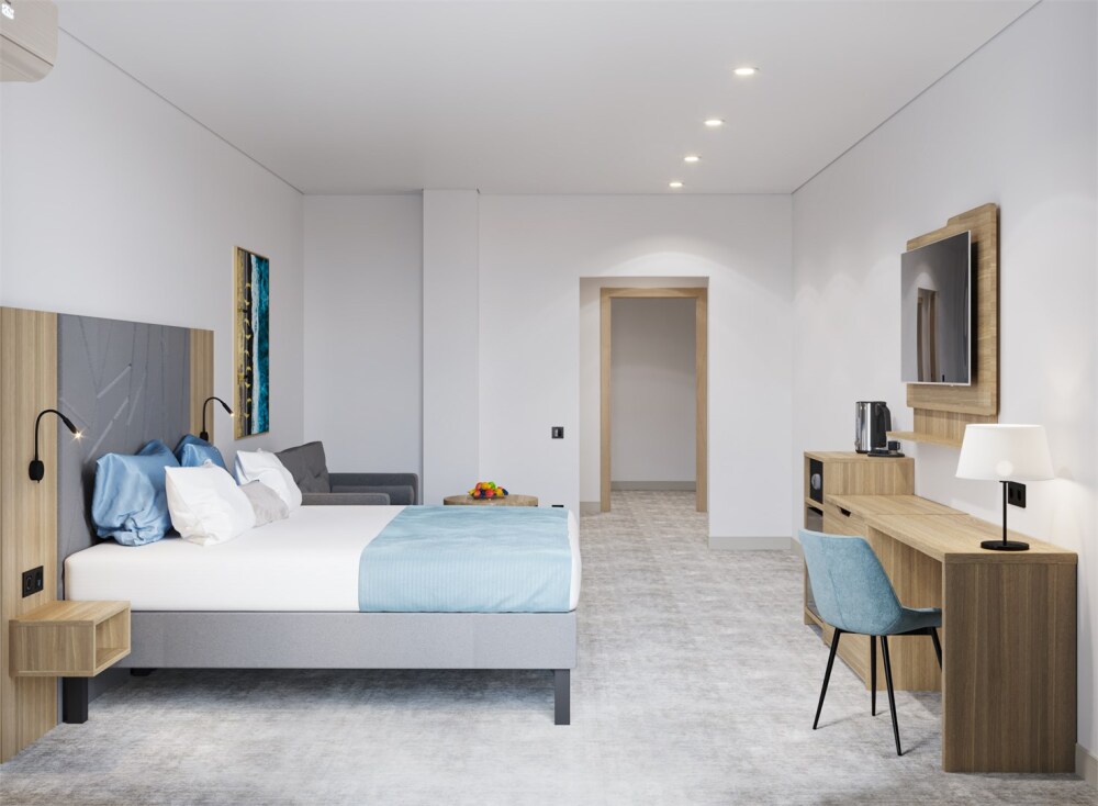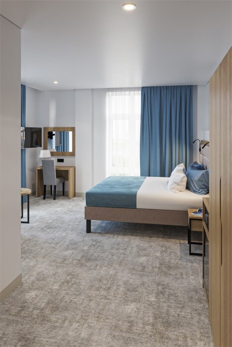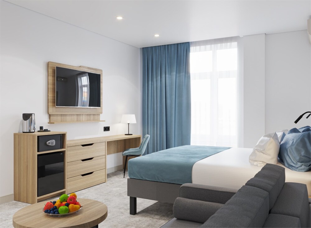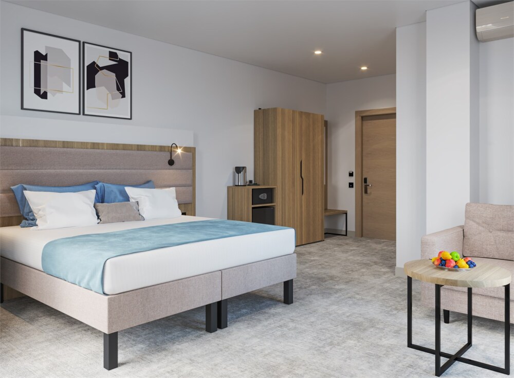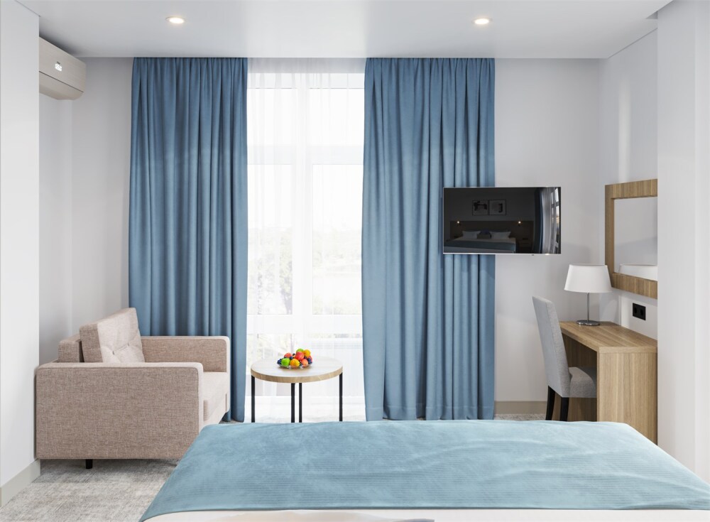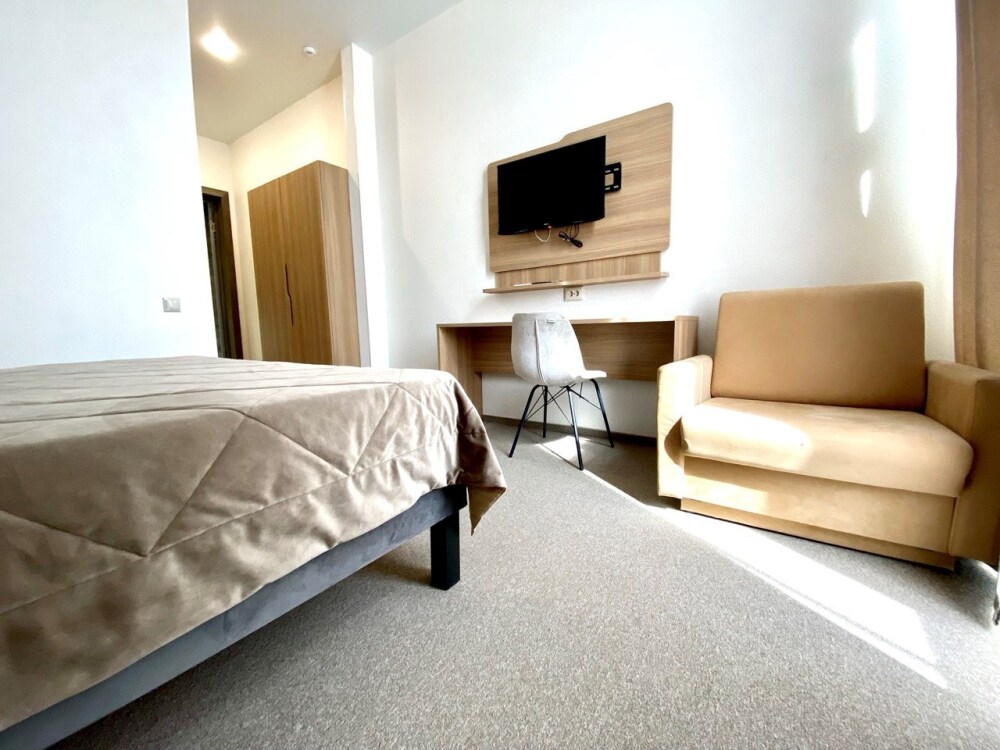 Интерьеры оформлены современным стилем и обставлены стильной мебелью, чтобы гости чувствовали себя как дома. Кровати с мягкими матрасами и свежим постельным бельем обеспечивают спокойный и комфортный сон.