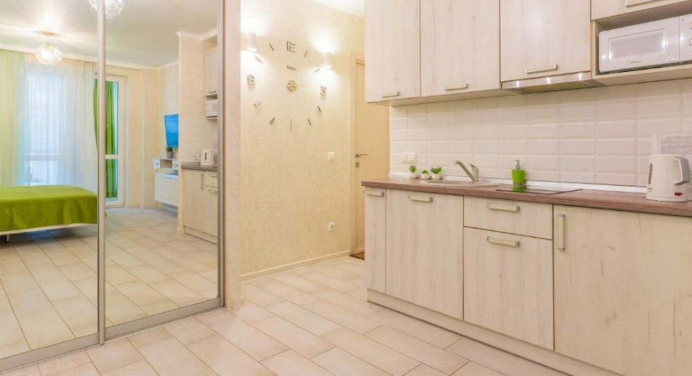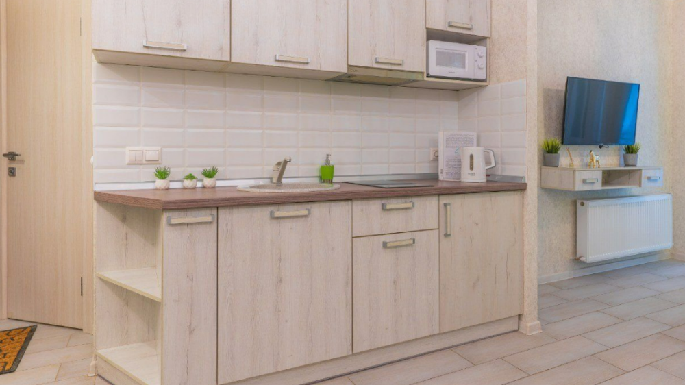 - из мебели: кухня с необходимой для приготовления пищи посудой, всегда в наличии кофе, чай, сахар, снеки;