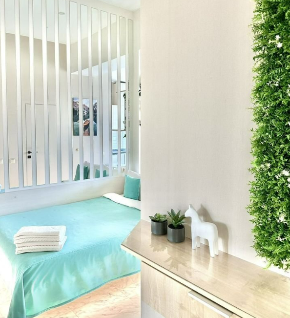 - натуральный текстиль: комплект полотенец, бельё, гипоаллергенные подушки, ортопедический матрас с наматрассником;