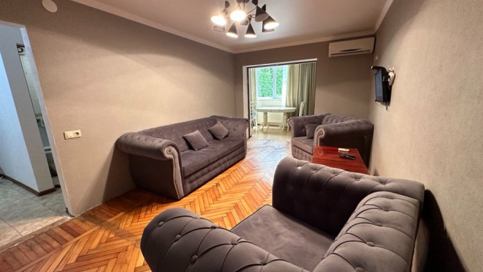 Гагра, центр. Двухкомнатная квартира с лоджией. Вместительность 4-5 человек. До моря - 1 минута. Все необходимое в квартире есть.
