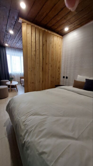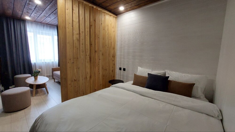 Круглосуточное бесконтактное заселение. Для Вашего комфорта большая двуспальная кровать и раскладной диван в гостиной: