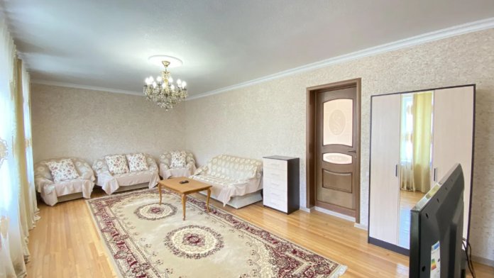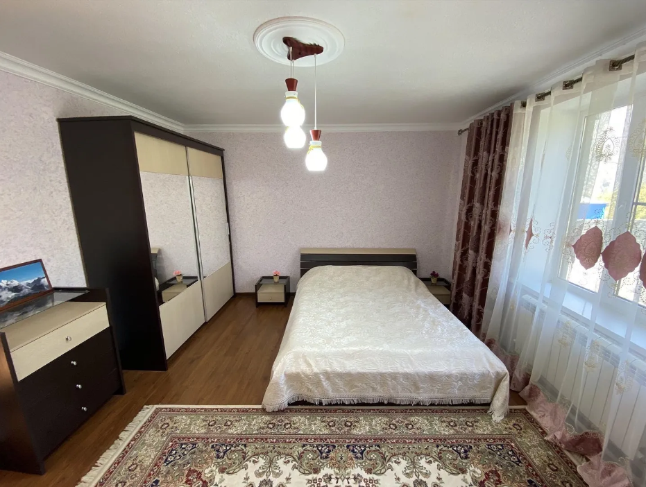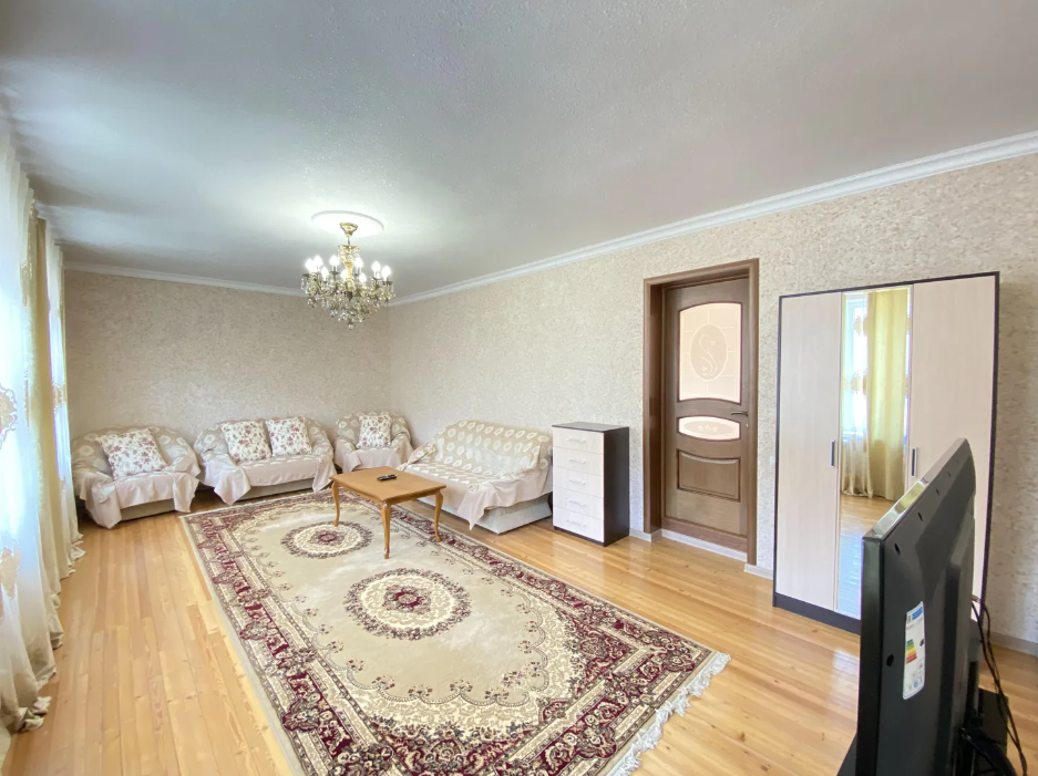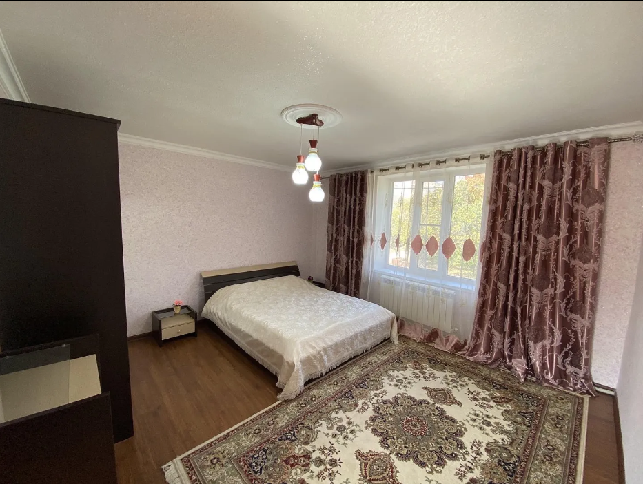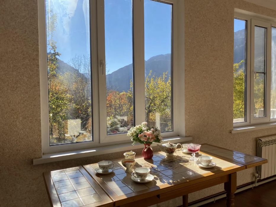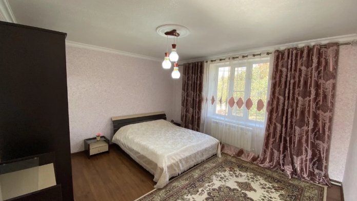 Для размещения подготовлены большая и маленькая комнаты, есть общая кухня. Двор полон зелени, есть зона отдыха, мангал, парковка.
