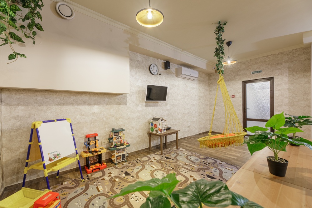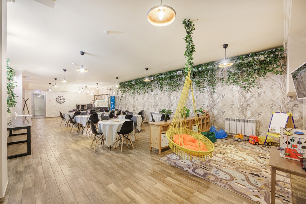 Имеется парковка, Wi-Fi в общих зонах, круглогодично подогреваемый бассейн, SPA зона (солевая комната, финская сауна), детский уголок, терраса с видом на парк, беседки для отдыха, закрытая территория, доступ в гостиницу- круглосуточный.