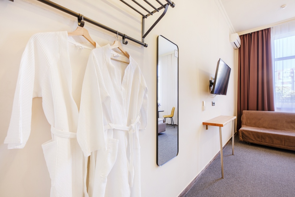 В номере есть средства гигиены, мягкие халаты и одноразовые тапочки для каждого из гостей.