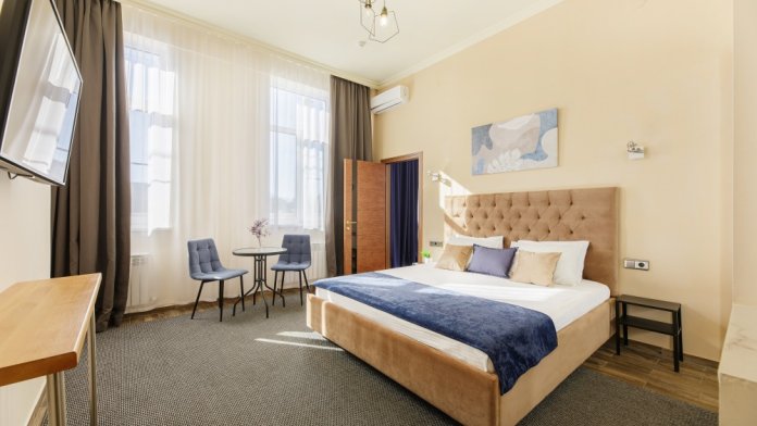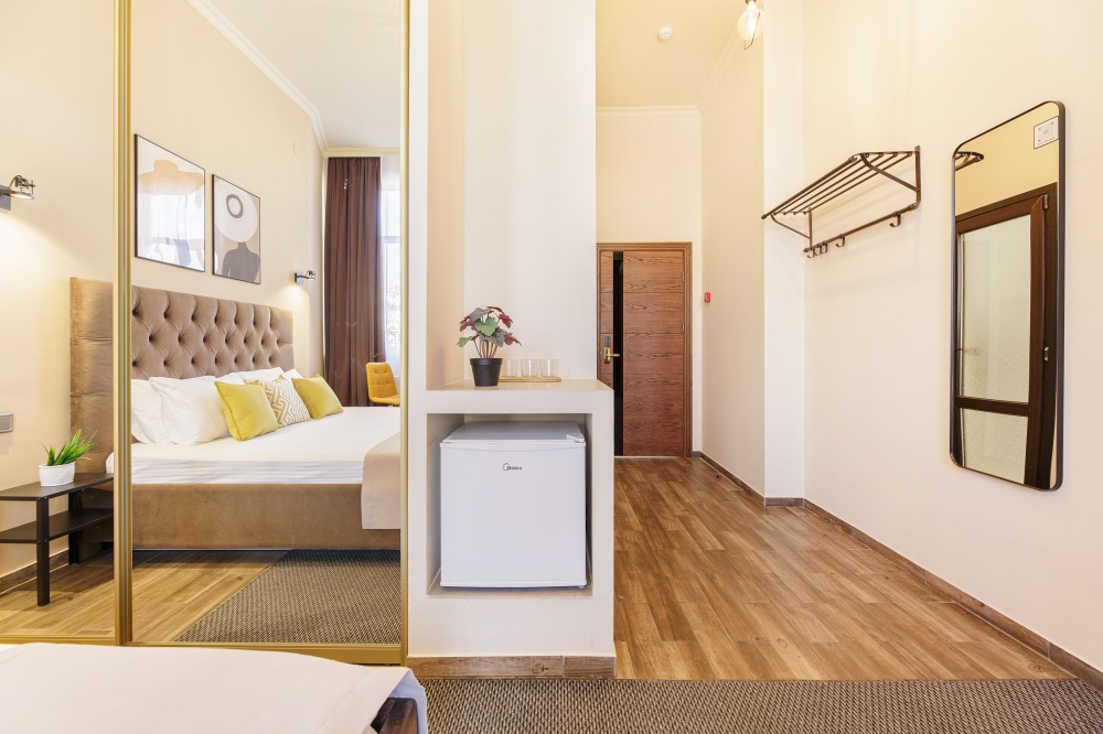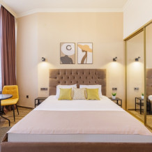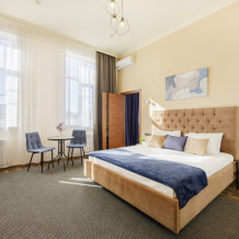 Двухместный номер повышенной комфортности и большей площади, Стандарт-улучшенный для размещения двух-трех гостей. В этом уютном номере кровать King-size, вместительный шкаф, прикроватные тумбочки. В числе прочих удобств - холодильник, кондиционер.