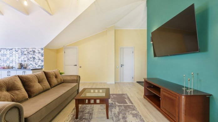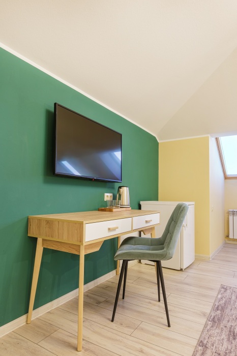 Номер оснащен всей необходимой для комфортного отдыха техникой и мебелью.