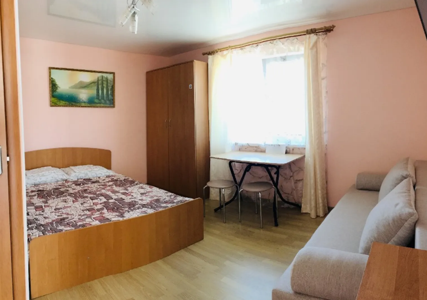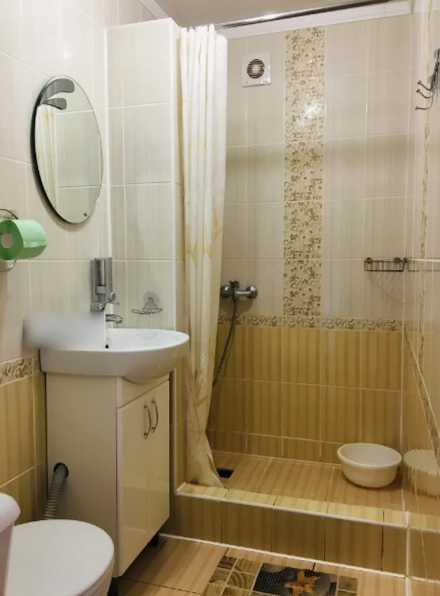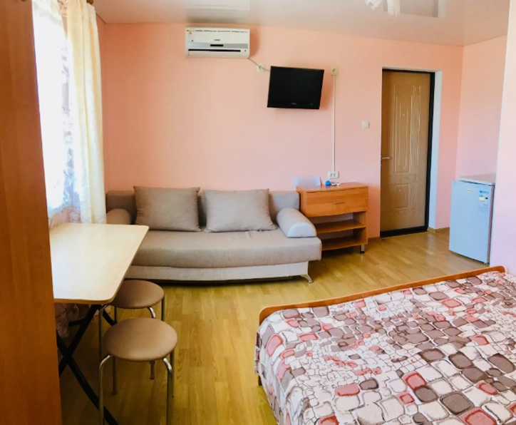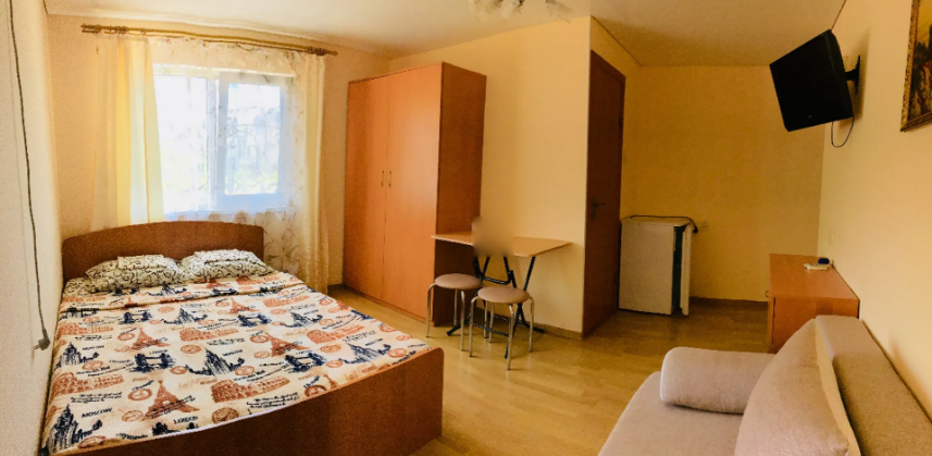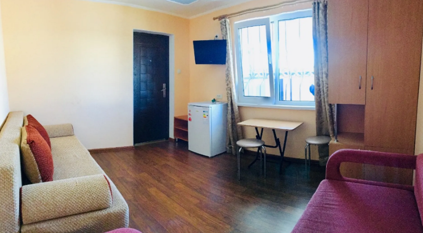 В гостевом доме 4 комфортных нoмеpa. В каждом номере индивидуальный санузел (туалет, душевая, умывальник), холодильник, телевизор, кондиционер, металлическая дверь. На 2 этаже 3 номера с выходом на просторный балкон. Во дворе качели для отдыха. Напротив дома беседка с мангалам. Есть стоянка для авто.