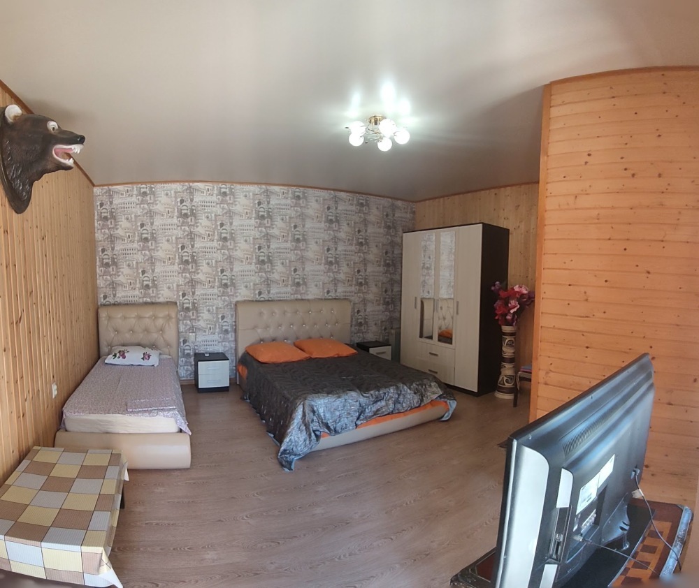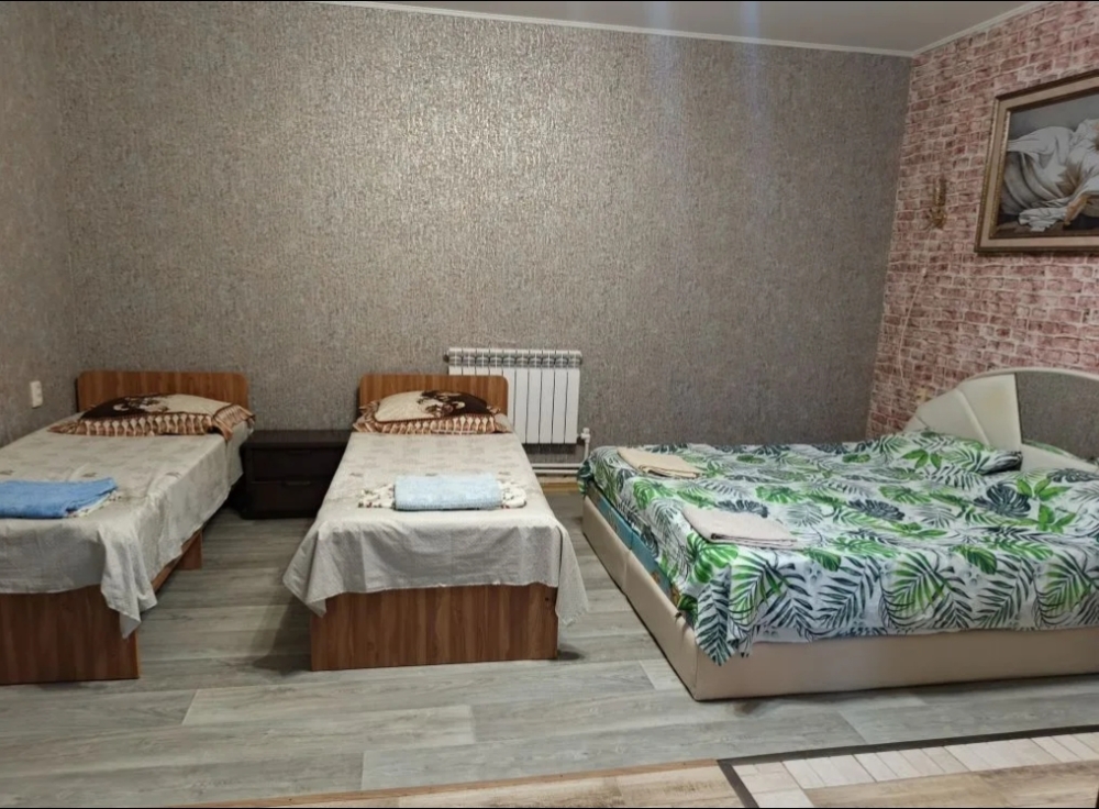 Наш отпуск прошёл великолепно. База впечатляет наилучшими характеристиками, а хозяева проявили исключительное добродушие и отзывчивость. Территория ухоженная, зелёная, есть место для отдыха от дневной жары. Все условия созданы для комфортного отдыха: просторные комнаты, оснащённые всем необходимым, санузел в номере, качественная мебель, достаточное количество постельного белья и полотенец. Кухня современная и просторная, с хорошей мебелью, большими холодильниками и новой посудой. Питьевая вода доступна без ограничений, что тоже заслуга заботливых хозяев. До моря всего 5 минут пешком, пляж большой, с зонтами, лежаками, катамаранами и чайными столиками, а также музыкальным сопровождением. Поселок крупный, рядом три магазина и домашнее кафе с вкусной едой, что удобно в дни приезда и отъезда. Местные жители доброжелательные и отзывчивые. Внуки были в восторге от общения с домашними животными — коровками, индюшатами и утятами. Мы планируем вернуться, и выражаем благодарность хозяевам Александру и Анне за их внимание и заботу. Желаем им здоровья и процветания.
