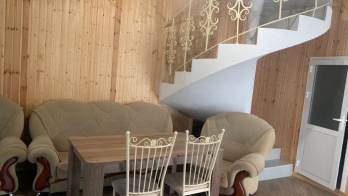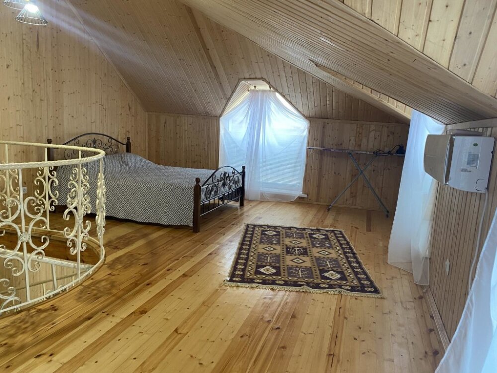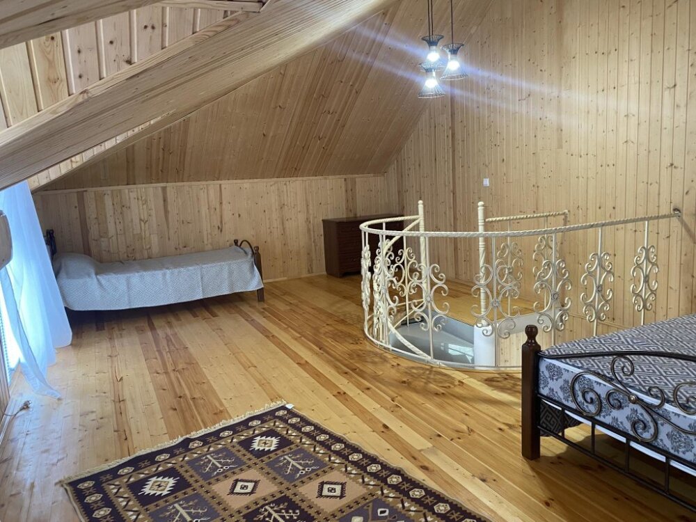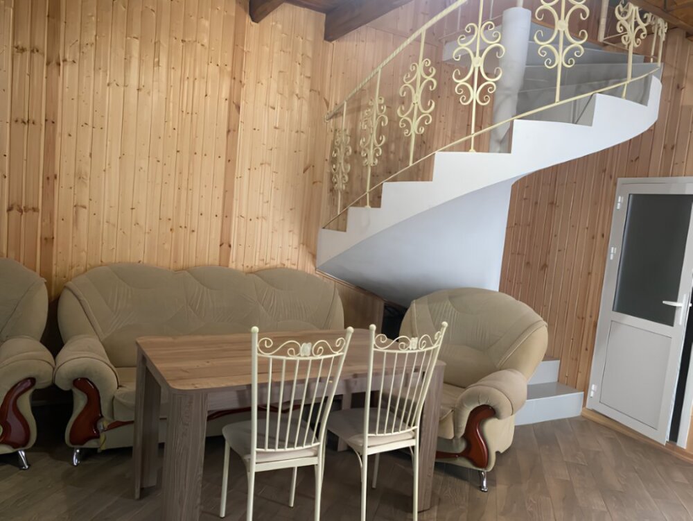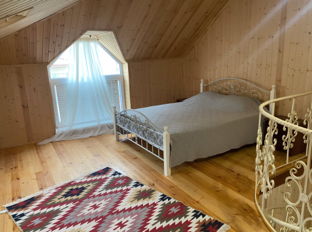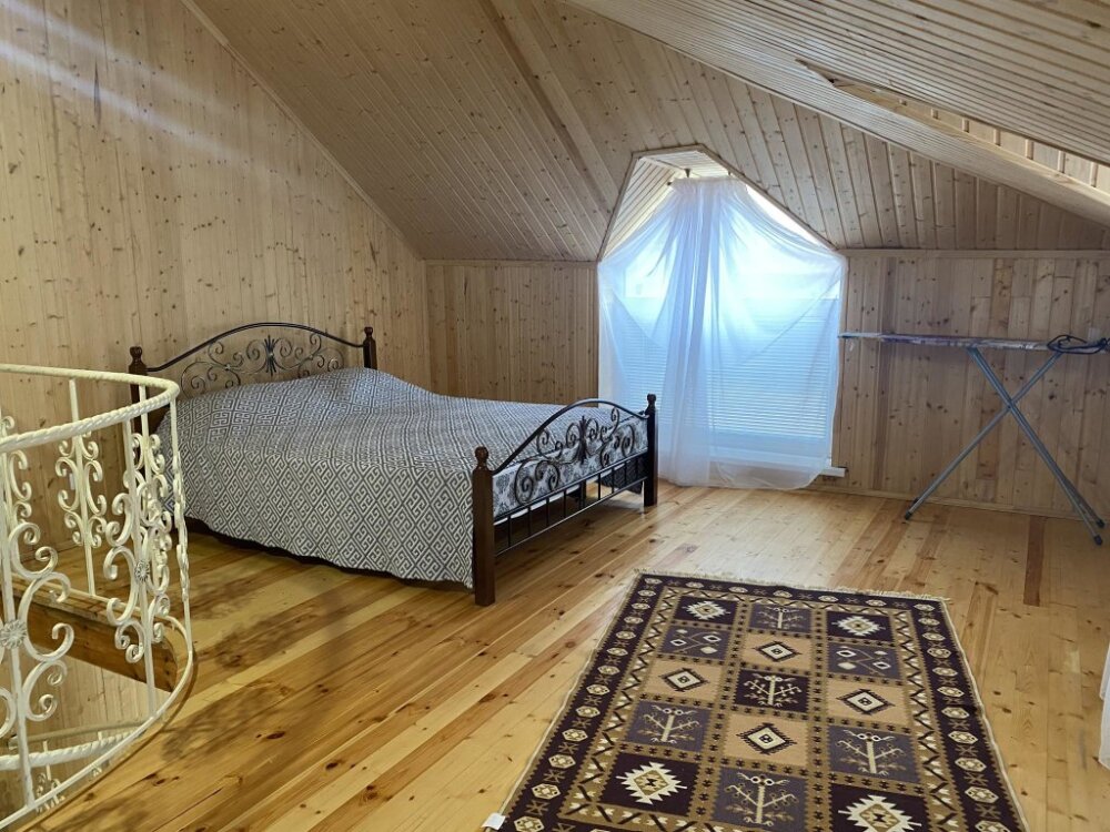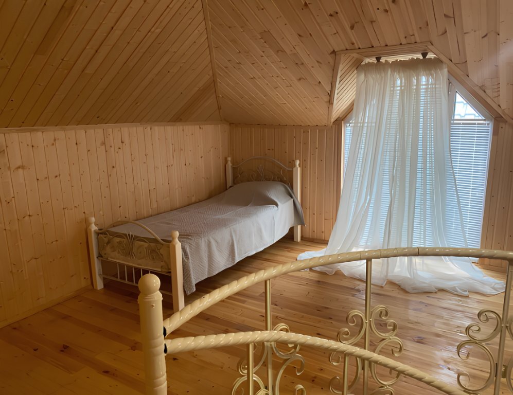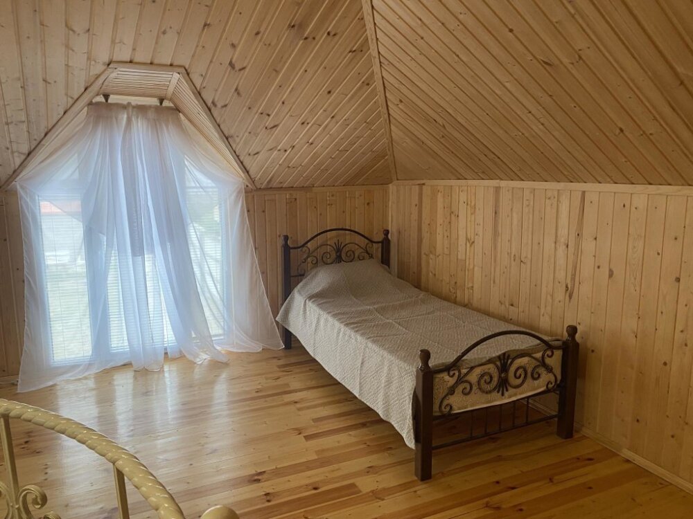 На территории располагаются 3 двухэтажных комфортабельных коттеджа. Участок огорожен. На первом этаже находится: кухня со всем необходимым, гостиная, включающая раскладной диван и два кресла, стол со стульями, телевизор, душевая с санузлом. На втором этаже просторная спальная комната с одной двухспальной кроватью, одной односпальной кроватью и комодом.